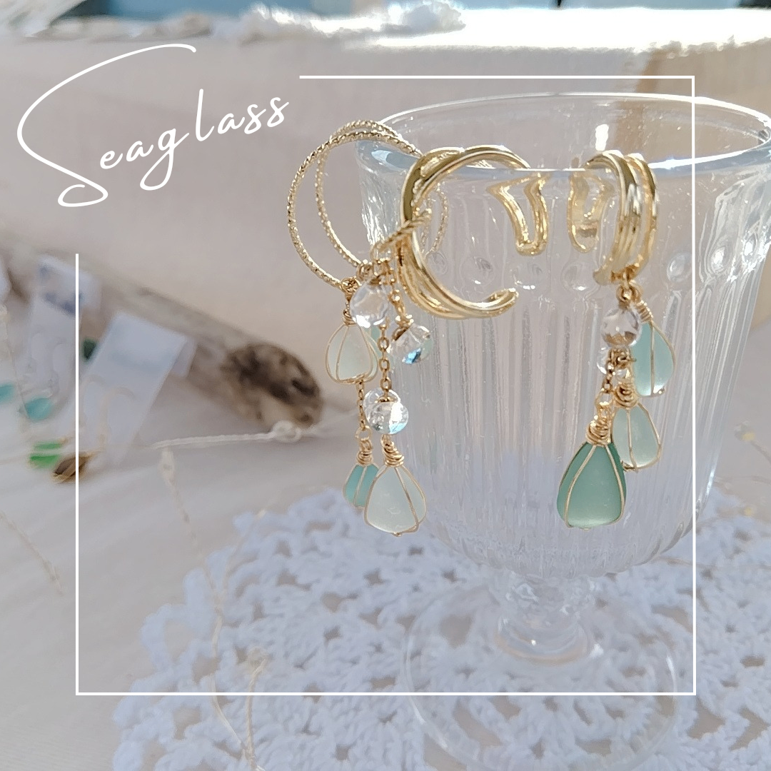 南房総で拾い集めたシーグラスを使用。 穴開けや研磨はせずワイヤーで包む世界にひとつだけのアクセサリーο°✳