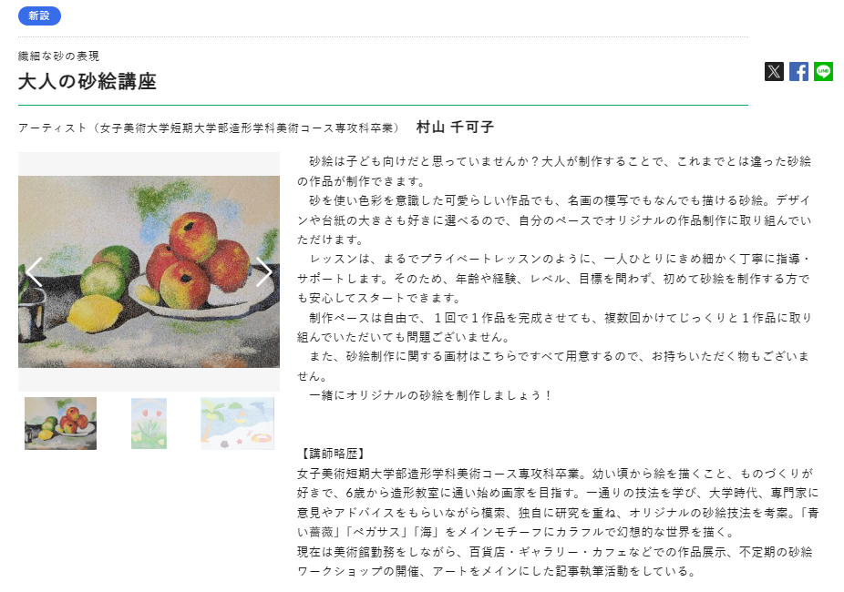 ●2026年1月12日~第2月曜日よみうりカルチャー荻窪にて「大人の砂絵講座」開催