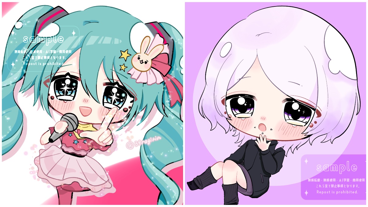 初音ミクさまfanart(左)、ご依頼イラスト(右)