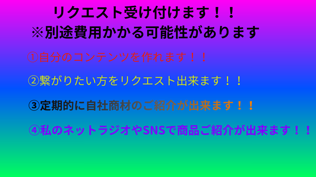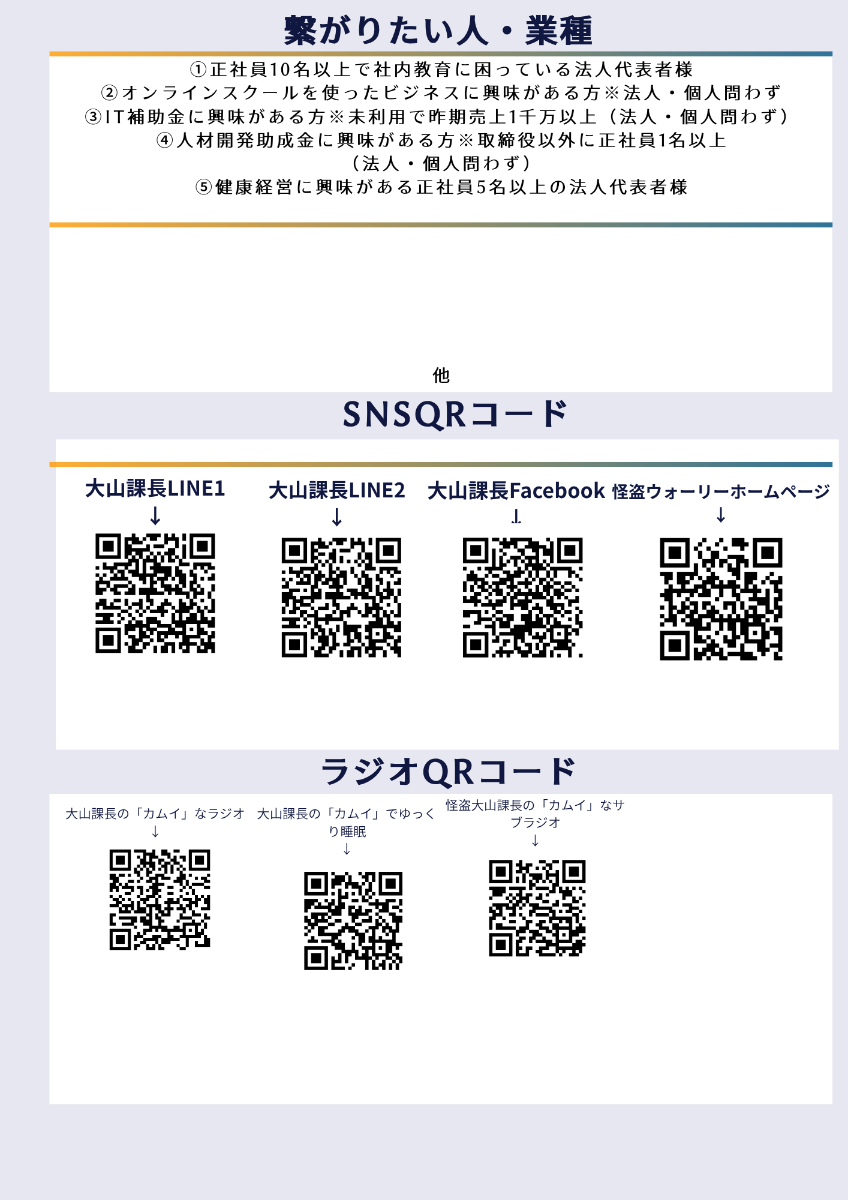 ①営業&営業サポート(クレーム対応の神)&エンタメの3軸 ②オーダーメイドアポイント代行事業のAPサポート代表 ③趣味は芸能全般と人狼・ボドゲ・マダミス等 ④ミュージシャン神威英也(かむいひでや)、YouTuber怪盗ウォーリーとしても活動中!!