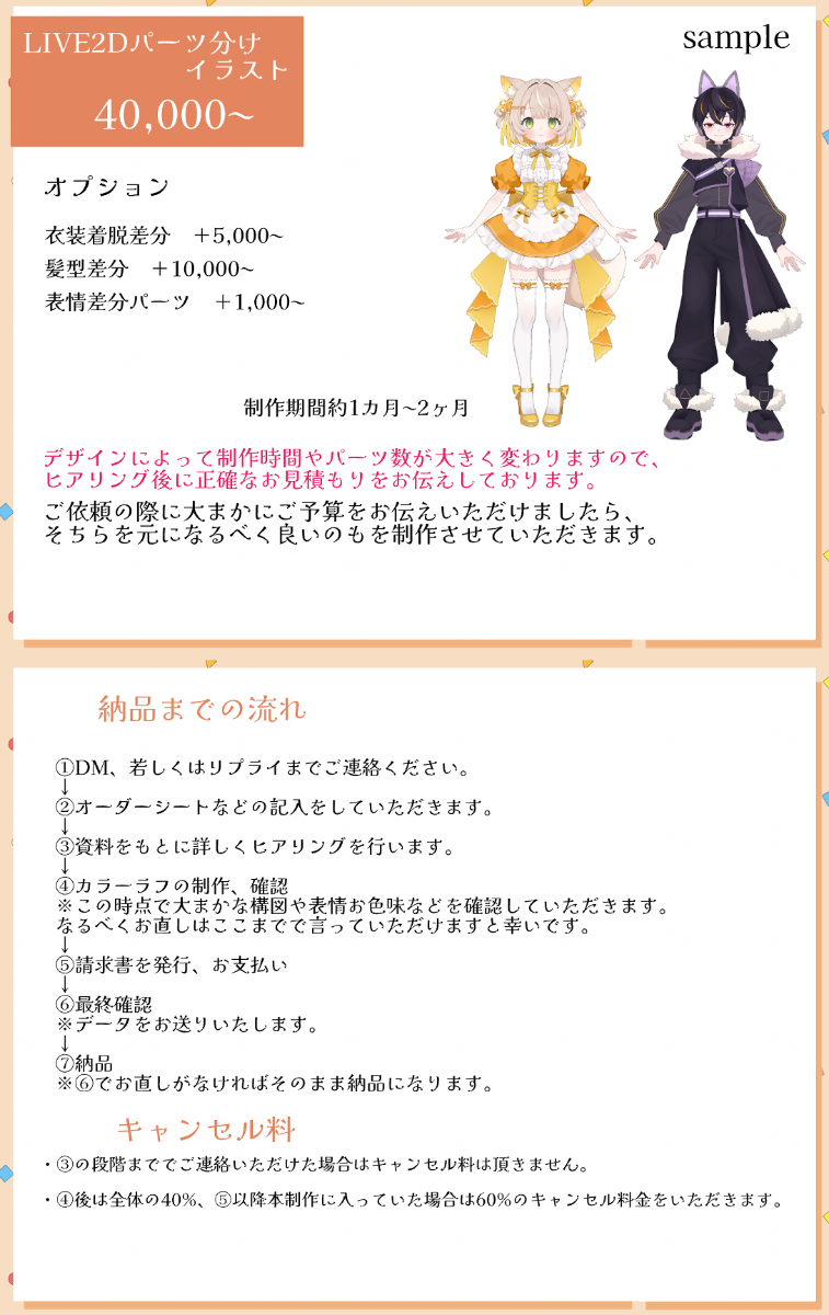 クリエイター兼ライバー 実績数500件以上◎ ゆめ可愛い彩度高めの雰囲気からシックでかっこいいイラストまで。 ケモ耳キャラクター、ロリータ服、フリルが好きです❤️ 女の子多めですが、男性からのご依頼も受け付けております♪