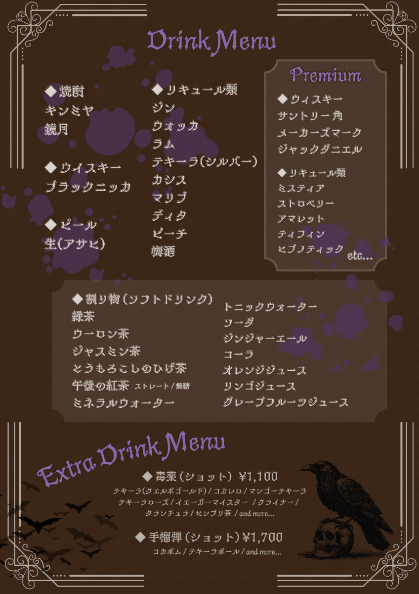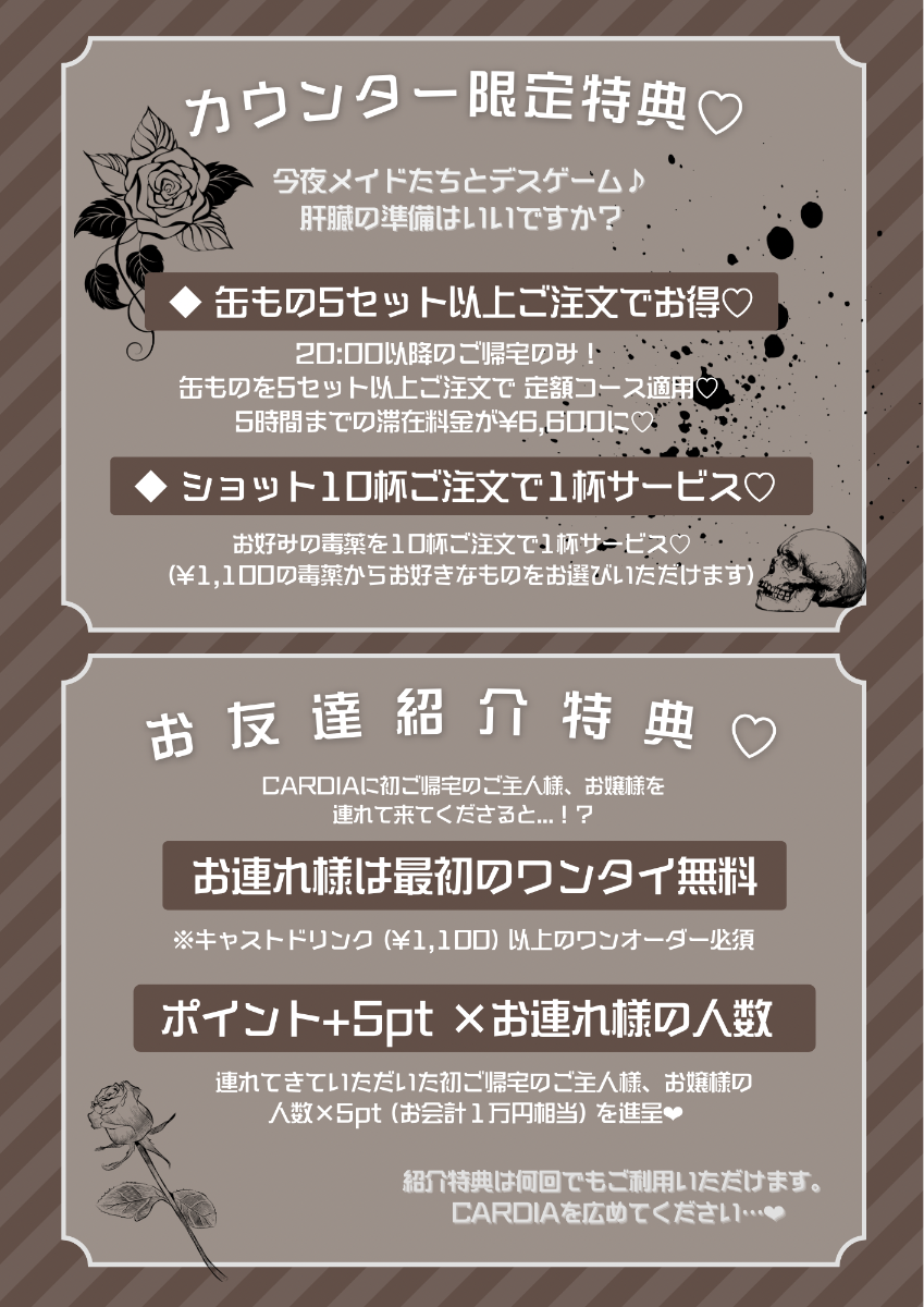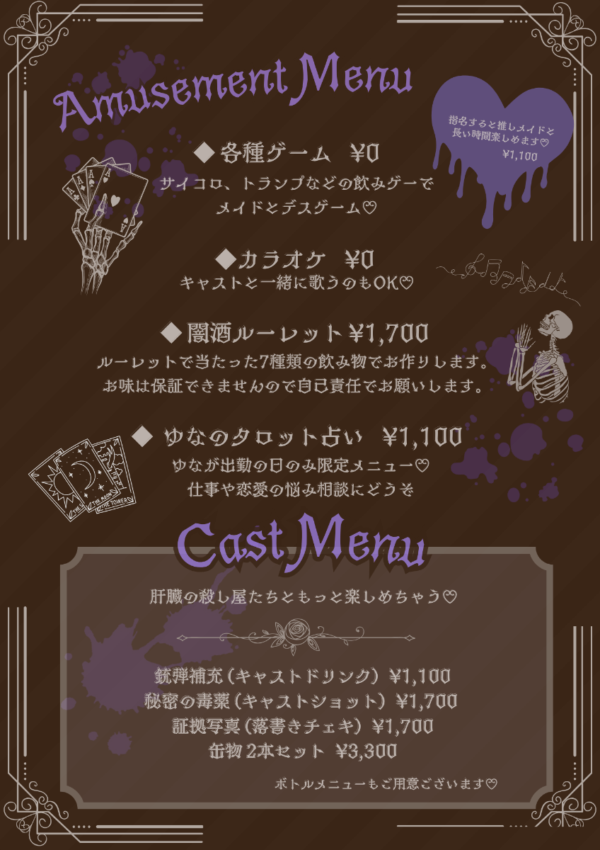 ﹏﹏﹏﹏﹏﹏﹏﹏﹏﹏﹏2022.06.05 grand opening 🗝ロングメイドに扮した(肝臓の)殺し屋たちがお給仕するコンセプトカフェ&バー🥀お酒の種類、居心地の良さに定評のある、隠れ家のようなコンカフェです🗝ぜひご帰宅お待ちしております❤︎________________________カウンター7席、ソファ席2卓カラオケ最新DAM完備 🎤 / お席での喫煙OK 🚬フリーWi-Fi有 ᯤ̣ / モエスタ掲載店📖´-クレジットカード 💳 paypay対応