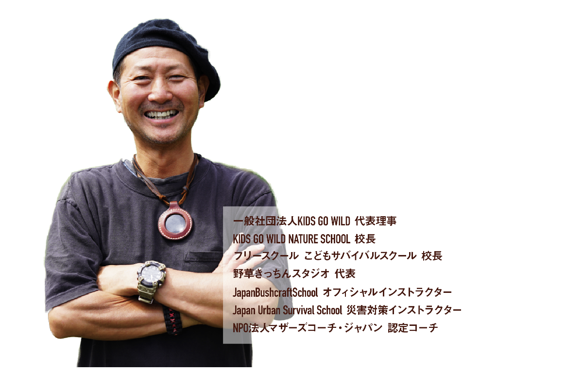 兵庫県神戸市出身。幼少期は六甲山系摩耶山のケーブルカー乗り場が目の前という自然豊かな場所で育つ。現在の活動の原動力は、一人で山に遊びに出かけてさまざまな危険な状況に遭遇した「9歳の頃の自分」。あの頃の自分にもっと知識があったなら。子どもたちを通して昔の自分に教えているのかもしれません。たくさんの子どもたちに直接伝えることに、本当にこの上ない喜びを感じています。