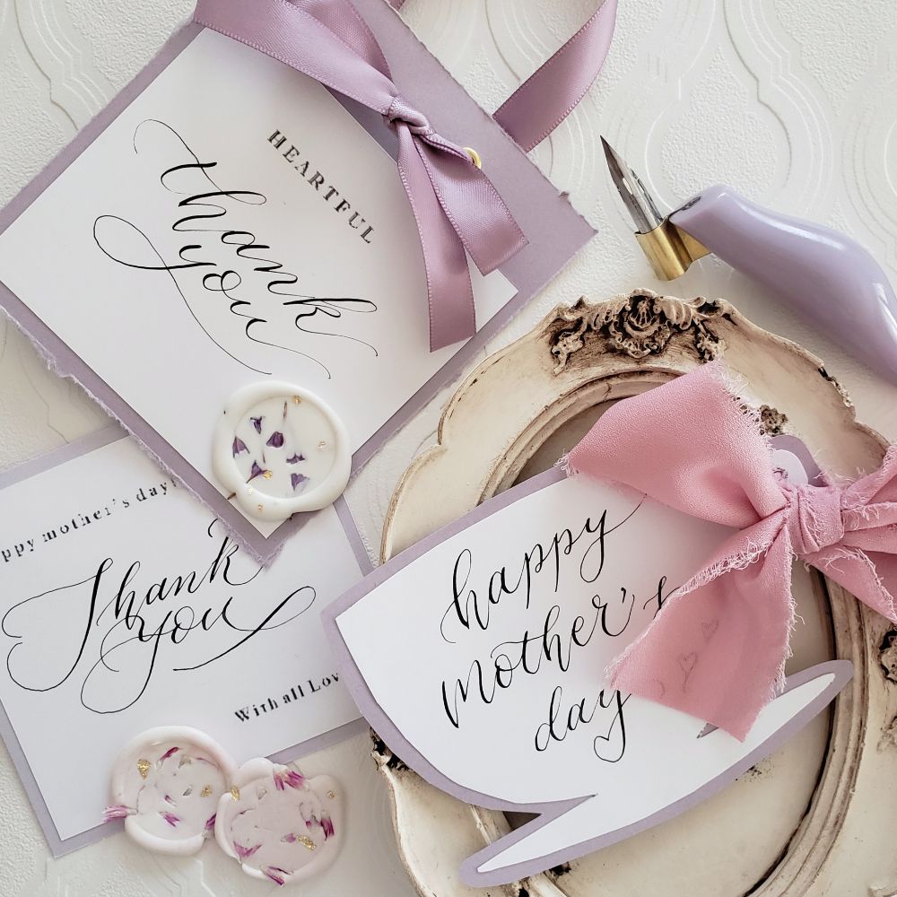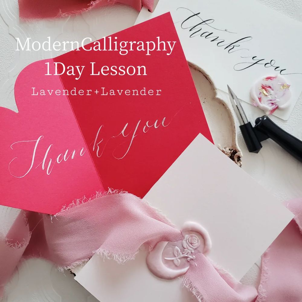 モダンカリグラフィーの体験レッスンです。ポインテッドペンでthank youを書きます。また、今、大人気のシーリングスタンプも体験して頂けます♡お洒落なペーパーアイテムを楽しく作ってみましょう