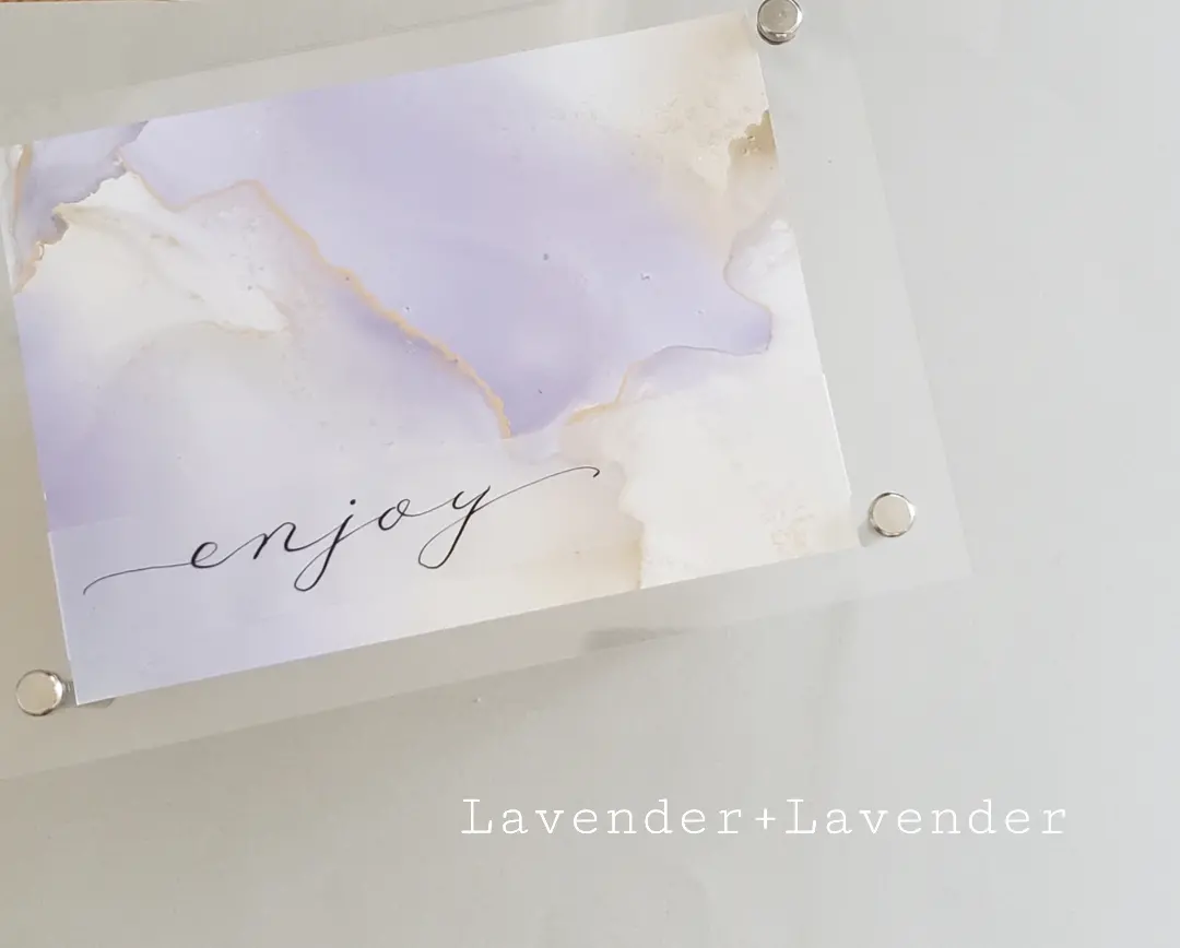 アルコールインクアートをまずはやってみたい!という方にオススメのレッスン。作品を透明感のあるアクリルフォトフレームに入れて完成!レタグラフィーも組み合わせたらもっと素敵✒️✨