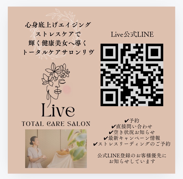 トータルケアサロンリヴのにわ貴子です 1995年から長年エステの世界にひっそりと携わってきました。 私は30代まで肌には自信がありました。 40過ぎ老化した自分に自信を失いかけ そこから本当の意味でのエイジングケアをしてきました。 今もなお追及中です 50まで目前になり自信を取り戻し今が1番好きな自分になれました⭐︎ 勿論歳は1年ずつ誰しもが平等に重ねていくもの。。。 それでも自分らしく生きていく為に 若さという武器で貴方の自信に繋げていただきたい 私も奇跡の50代を目指して♡ 1人でもこれからの明るい未来へ 輝く健康美女へ トータルケアサロン リヴ にわ貴子