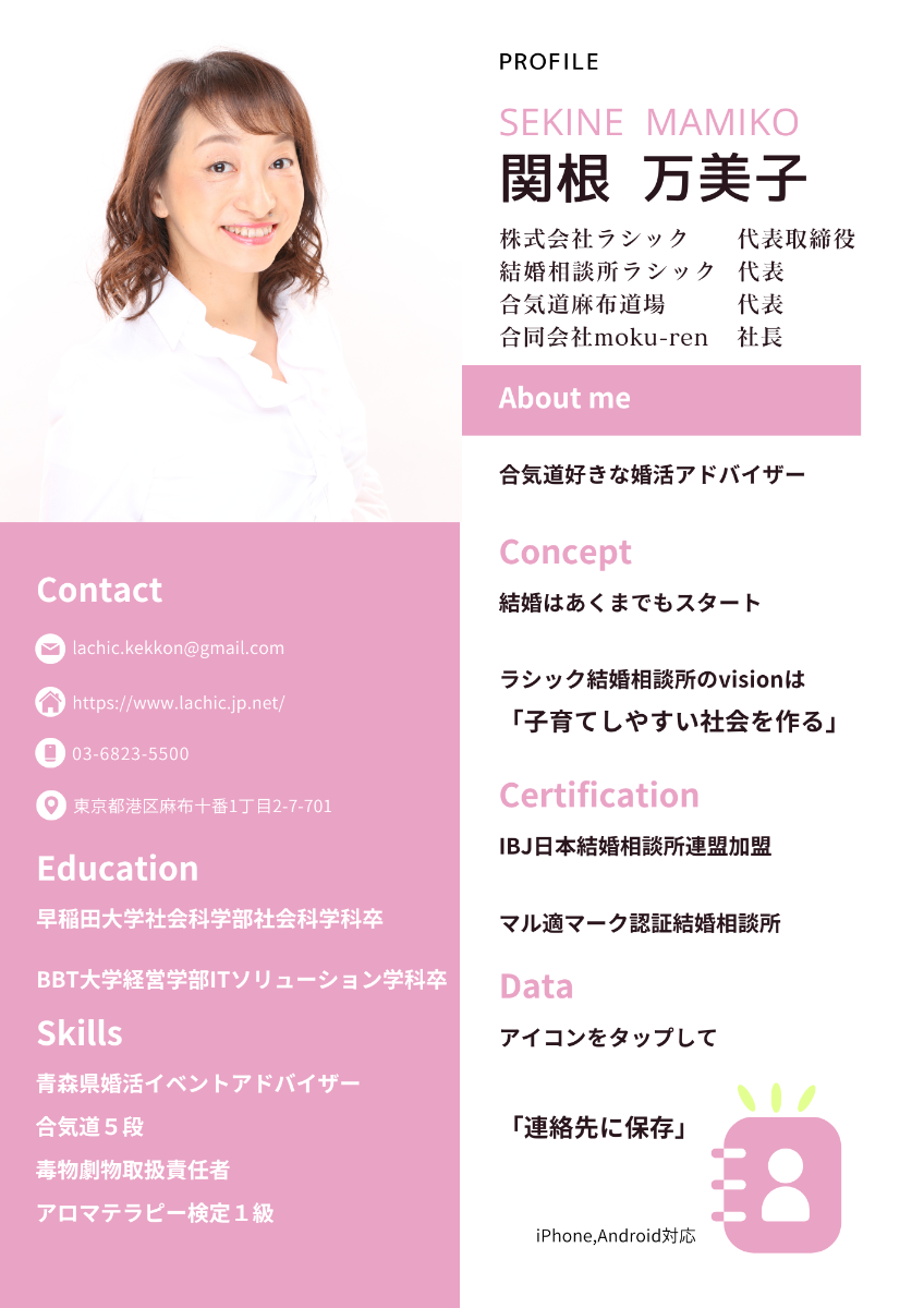 株式会社ラシック | 代表取締役 結婚相談所ラシック | 代表 合気道麻布道場 | 代表 合同会社moku-ren | 社長