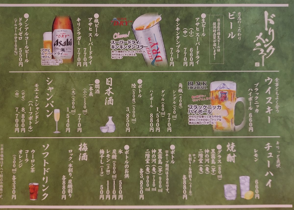 飲み物メニュー