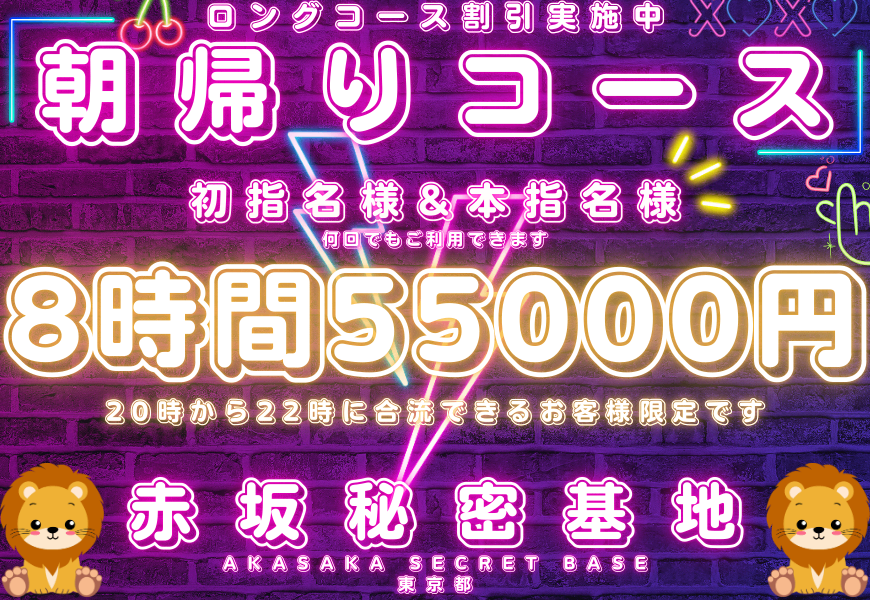 24時間365日営業 現在初指名様30分延長無料にてご案内してます 朝帰りコース8時間55,000円新設しました