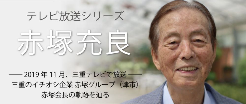 ●1933年(昭和8年)11月9日、三重県津市高野尾町に生まれる。●1949年(昭和24年・16歳)中学を卒業し、以後、農業に従事。●1956年(昭和31年・23歳)第1回カリフォルニア農業研修生として渡米し、3年間農場での労働に従事。●1961年(昭和36年・28歳)1月11日結婚。同じ日に赤塚植物園を創業。●1972年(昭和47年・39歳)ブラジル赤塚植物園を設立。●1974年(昭和49年・41歳)ハワイ赤塚植物園を設立。●1980年(昭和55年・47歳)ブラジル・サンパウロ州オザスコ市より名誉市民権を授与される。●1983年(昭和58年・50歳)第22回農林水産祭園芸部門で天皇杯を受賞。●1984年(昭和59年・51歳)水の働きに着目し研究を始める。●1991年(平成3年・58歳)黄綬褒章を受章。●2018年(平成30年・85歳)旭日双光章を受章。●2019年(令和元年・86歳)国立大学法人三重大学より名誉博士の称号を受ける。
