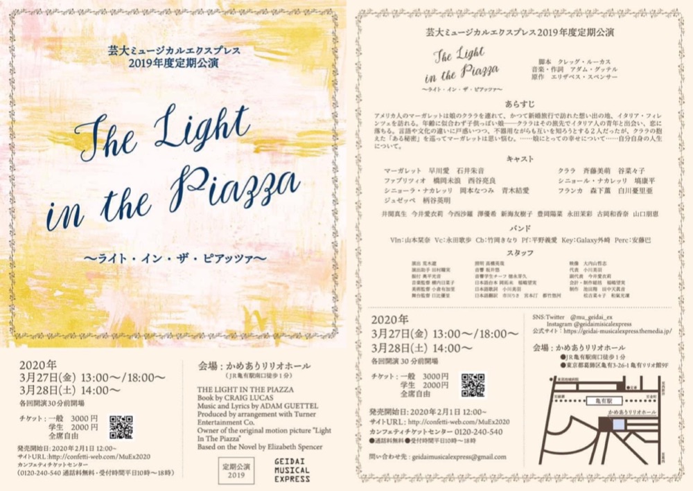 芸大ミュージカルエクスプレス2019年度定期公演 2020.03.27~28 かめありリリオホール(公演中止)