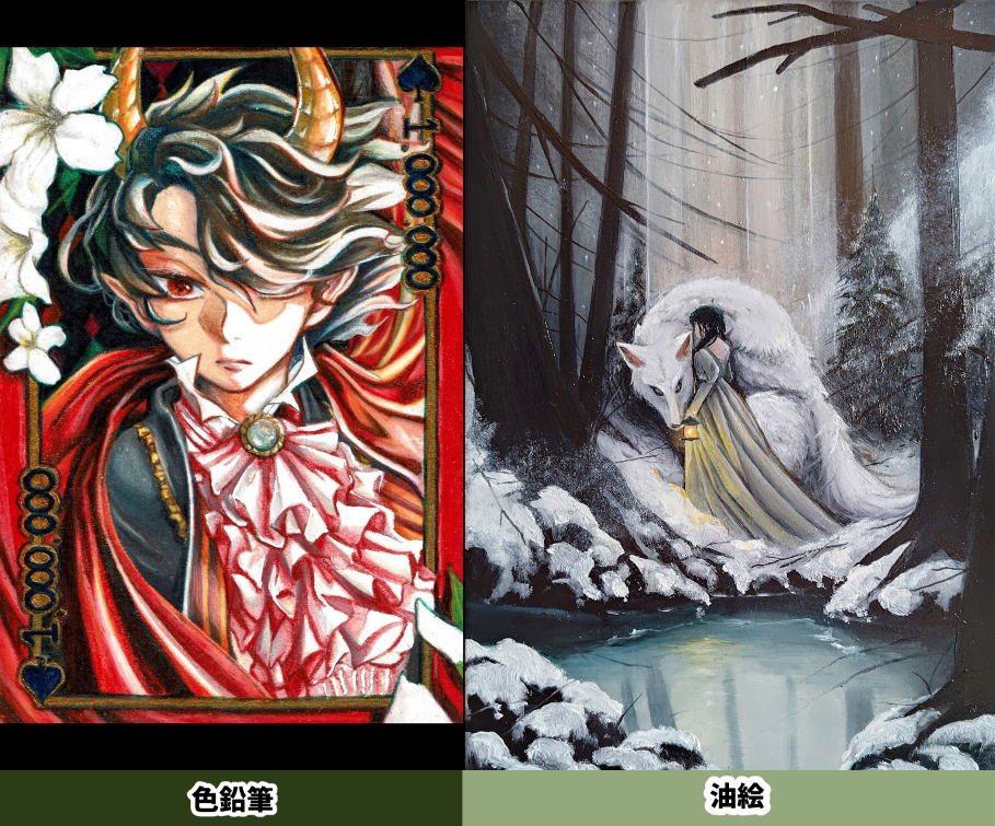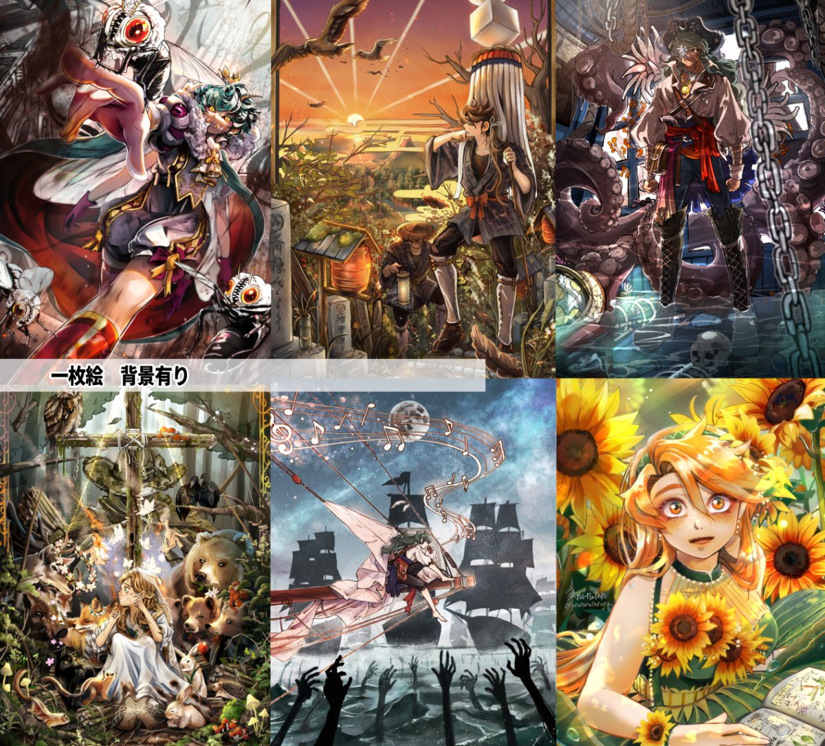イラスト・絵画・漫画・映像と表現の幅が広く、世界観を作りこむ分野の表現を得意としている。