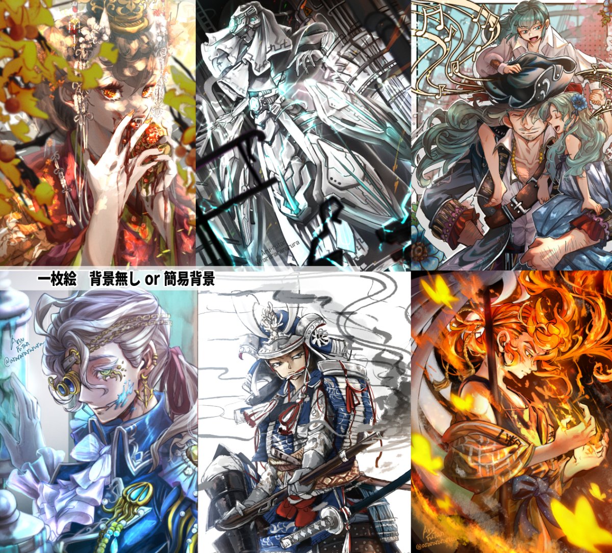 人物、特に若い男女を描くのが得意ですが、人外、メカ系、モンスター系、動物、植物等ご要望に応じて幅広く承っております。