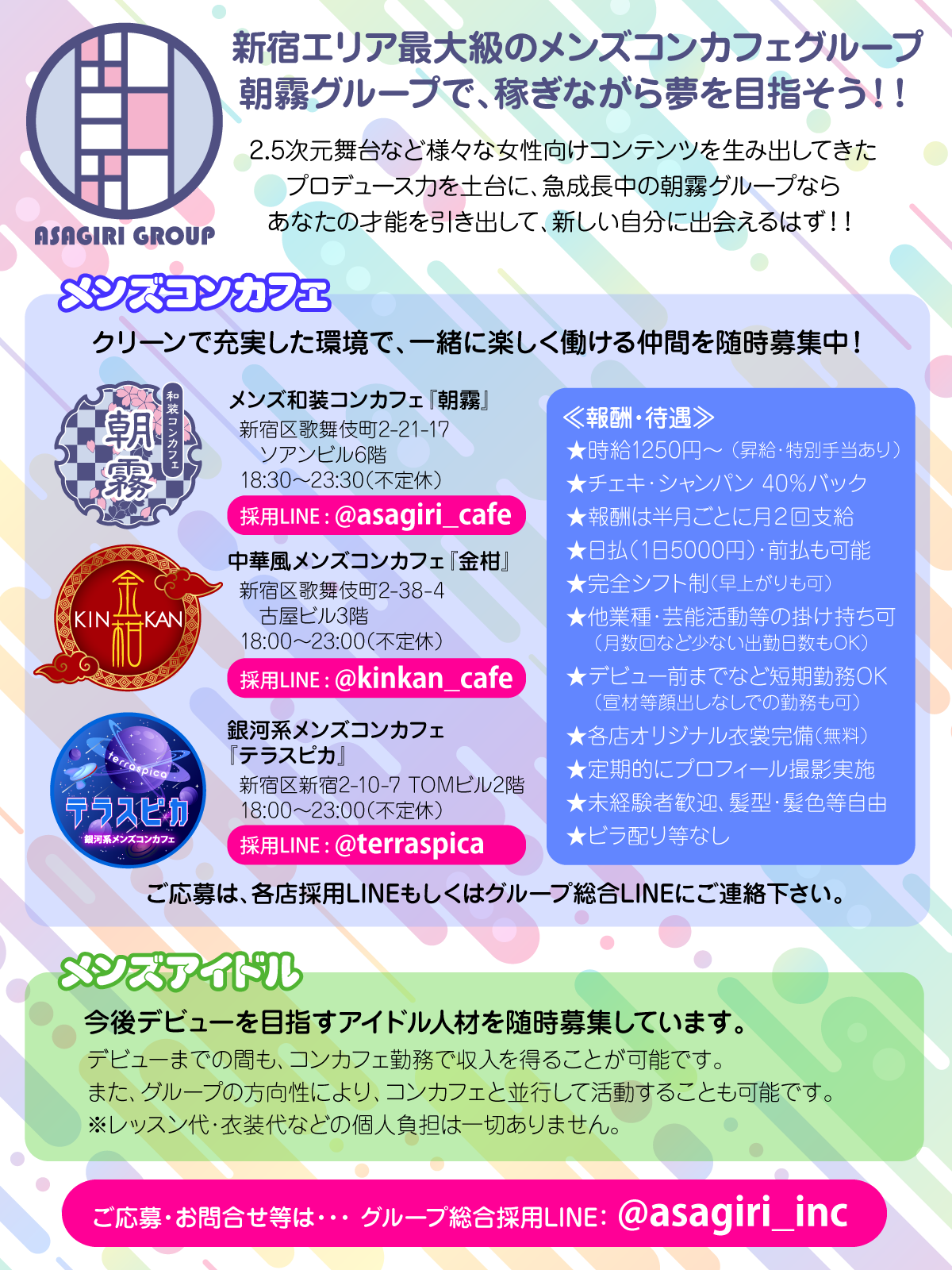 メンズコンカフェ・バー・メンズアイドルのいずれも、随時募集中!