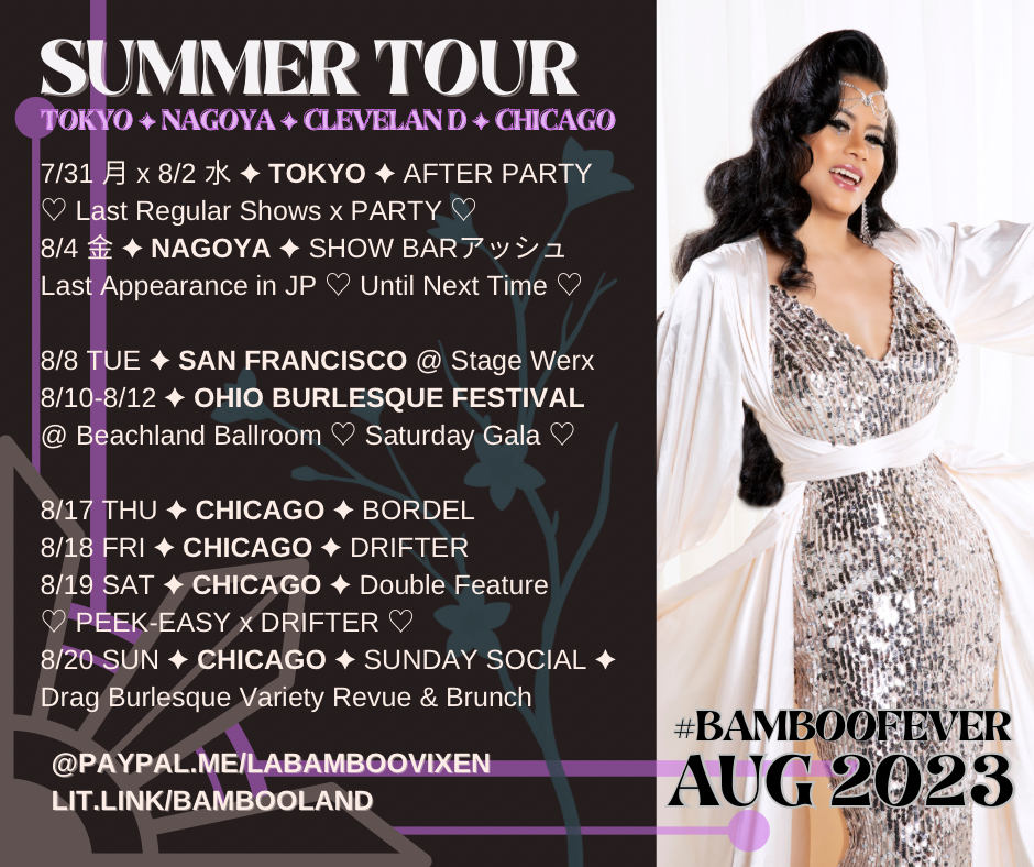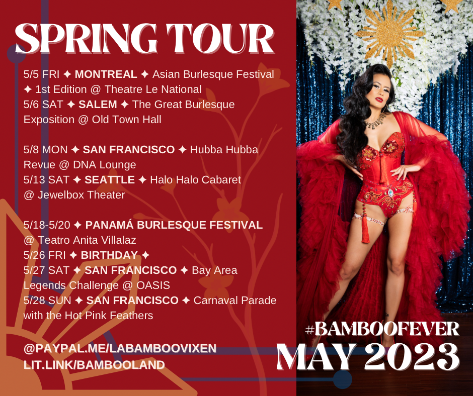 FILIPINA ✦ BURLESQUE ✦ SHOWGIRL バーレスク ✦ ショーガール @labamboovixen BAMBOOFEVER ✦ SPRING TOUR ☆ USA ✦ CANADA ✦ PANAMA ☆ 2023年4月~9月 ✦ APRIL to SEPT 2023 ☆ SUMMER TOUR ☆ South Korea ✦ Japan ✦ Norway ✦ USA