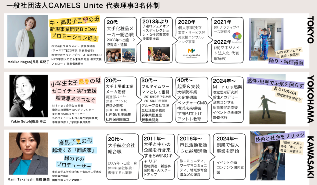 代表理事: ⻑尾 真紀⼦/後藤 幸江/⾼橋 麻美