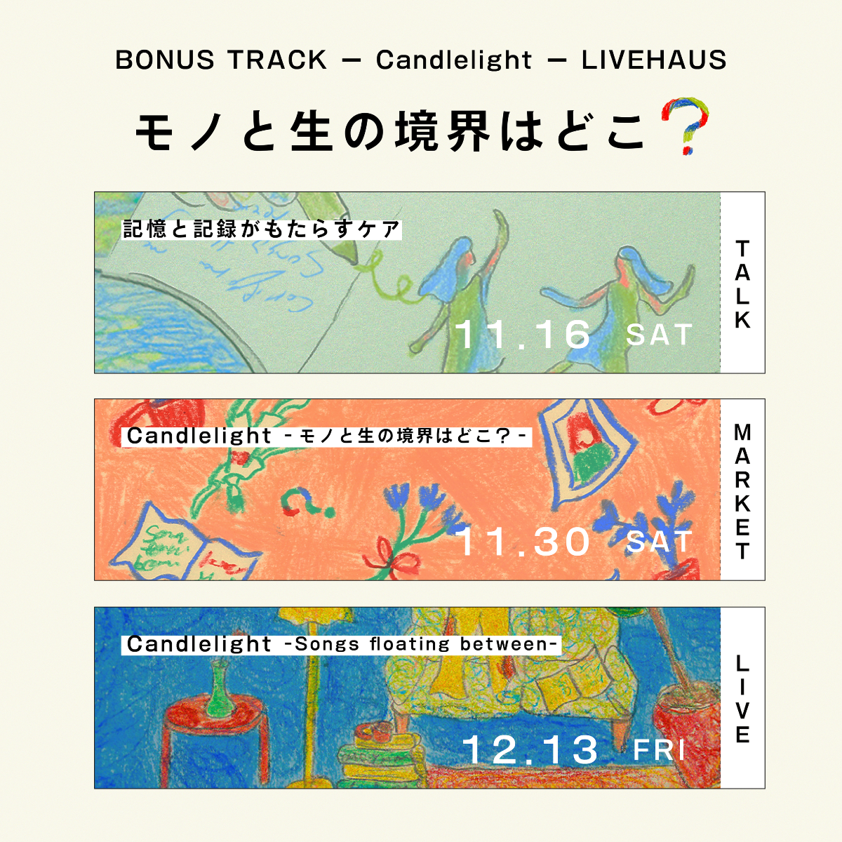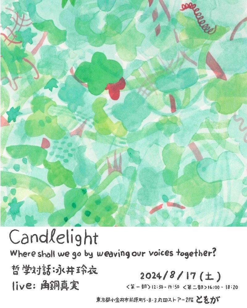 哲学対話×弾き語りライブ。永井玲衣・惠翔兵・惠愛由を迎えたCandlelightレポ。みんなで哲学対話をしてからライブをきく。「つながり」ってなんだろう?