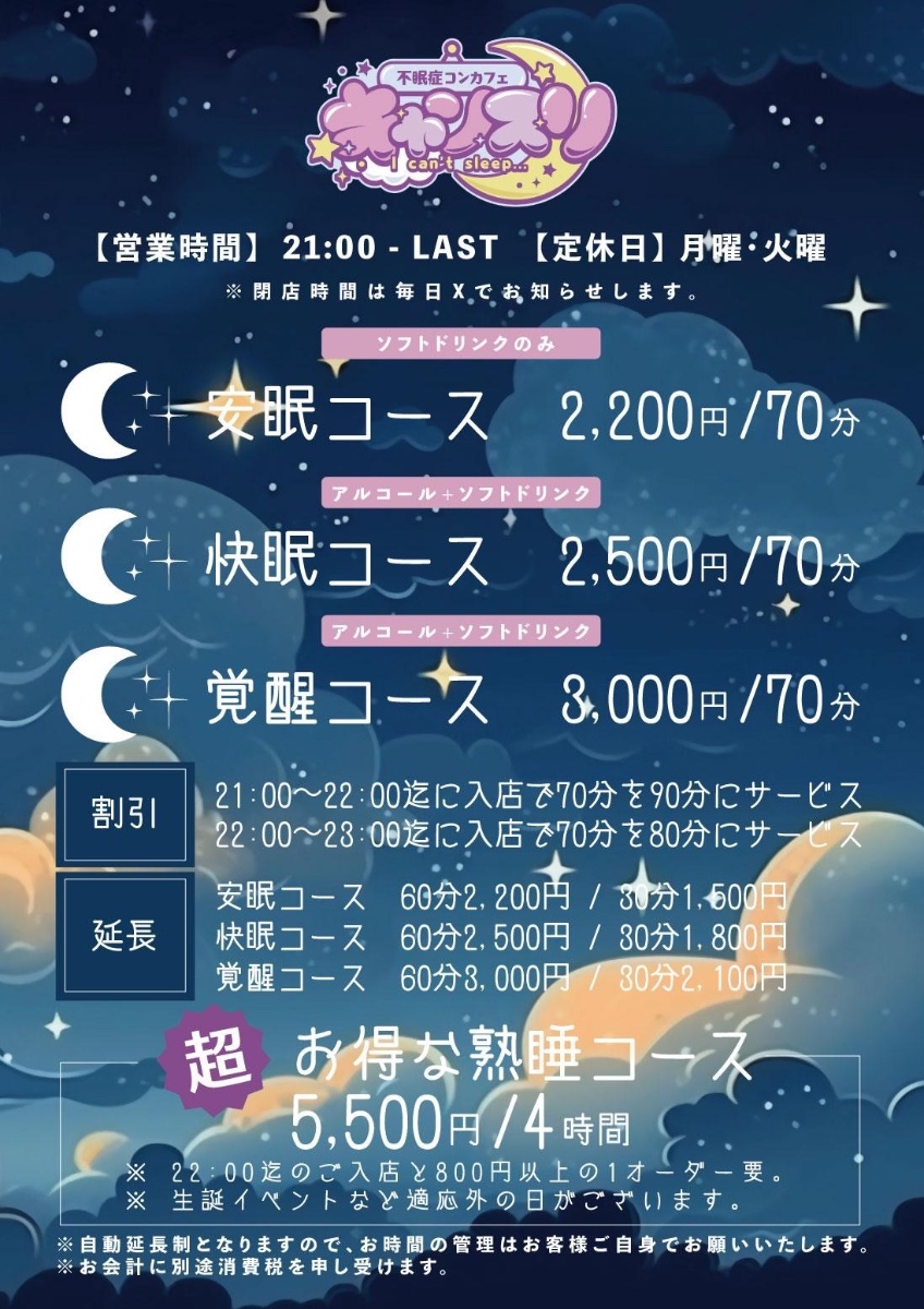 営業 21時〜翌5時(状況で延長あり)