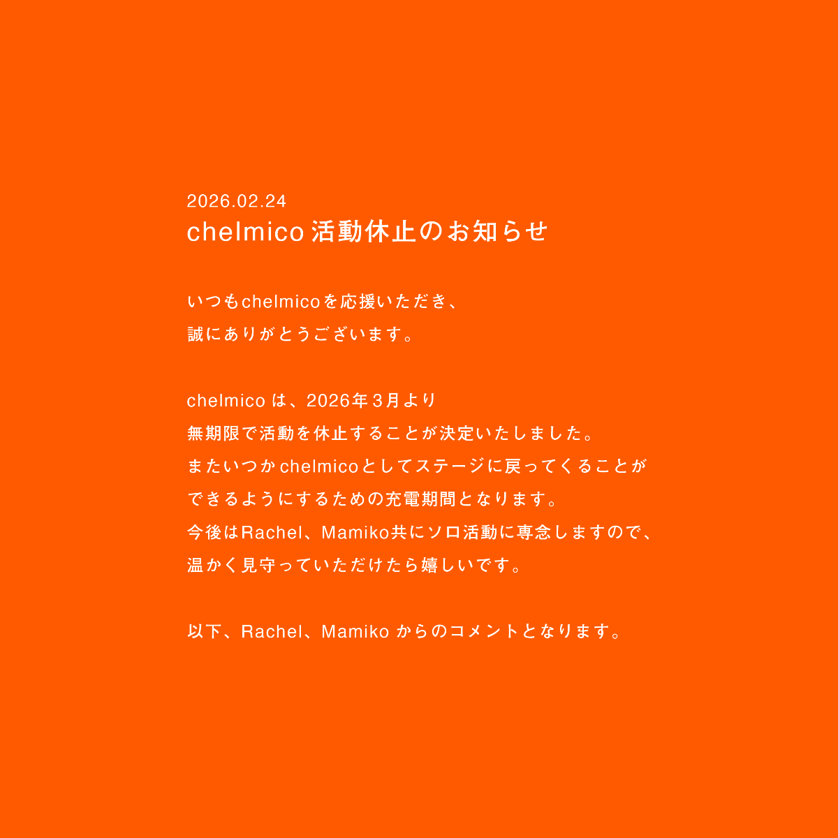 毎週日曜日配信Rachel レギュラーラジオ『MUSIC BLOOM』