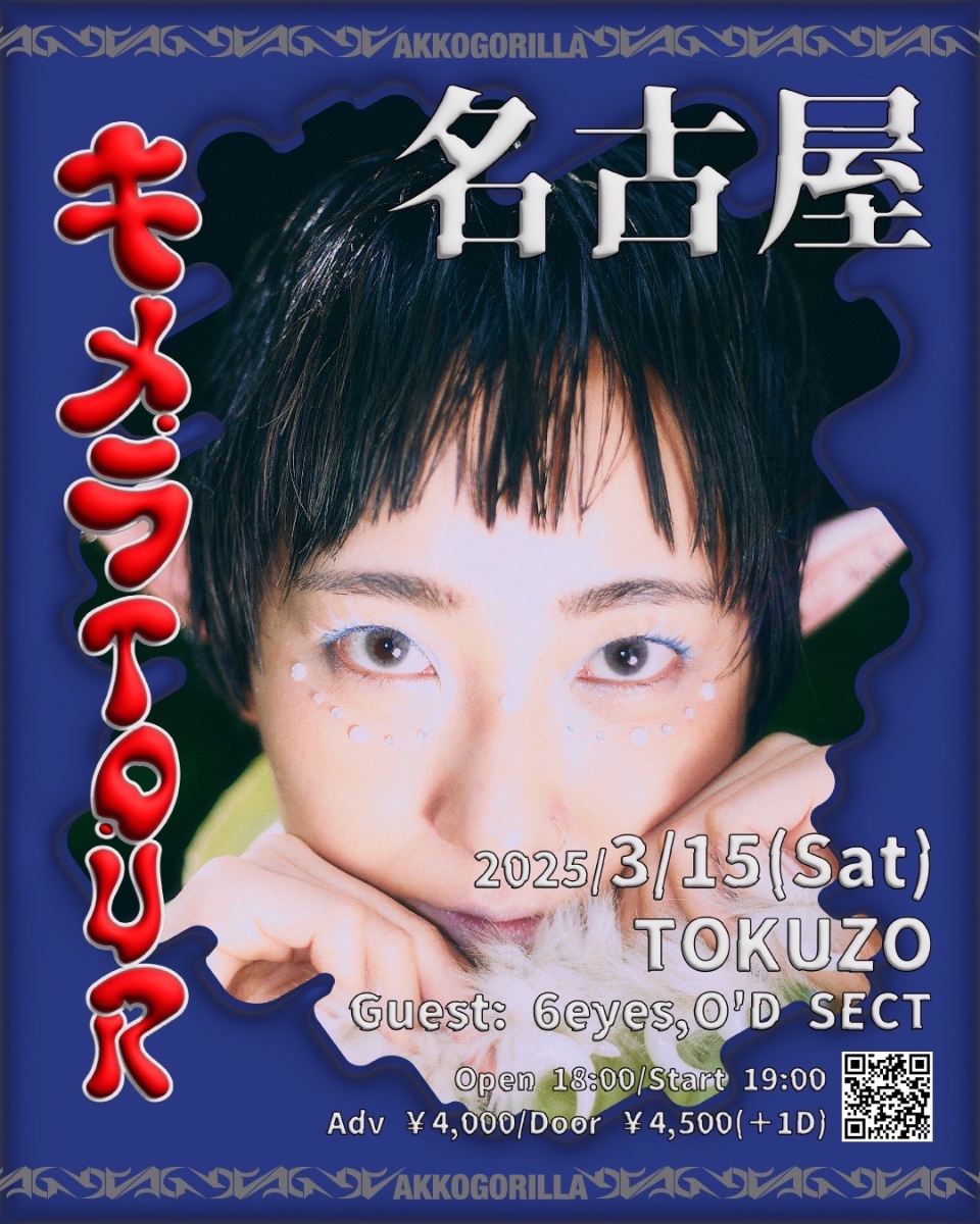あっこゴリラキメラTOUR〜だから祭をするホモサピエンス〜2025/3/15(Sat)TOKUZOopen 18:00 /start 19:00adv ¥4000/door ¥4500🔺ACTあっこゴリラguest:6eyes / O'D SECT🎫https://www.tokuzo.com🎫電話予約052-733-3709