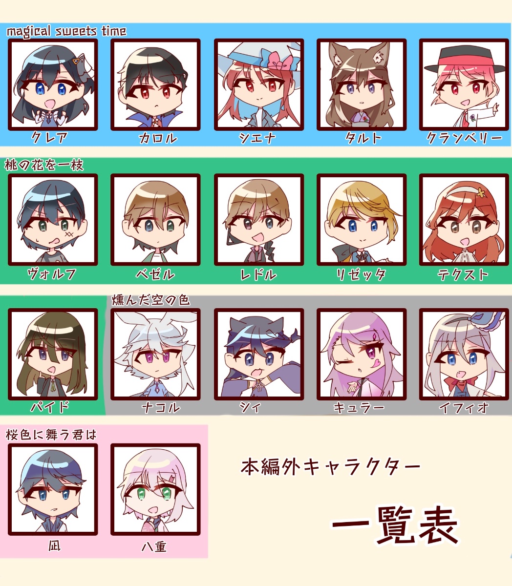 本編とはほとんど関係ない2組のグループの話です。・カフェで女の子が魔法族に囲まれながらお仕事したりお喋りする話と・アパートで男の子がいろんな意味で愛される話があります。また外伝物語もありますゲムオバ編に出てくるマフィアの話とどこの話も全然関係ない和風な国の話なんだが最近下記の水湖園ともう一個の話を加えて2期って呼び始めてます
