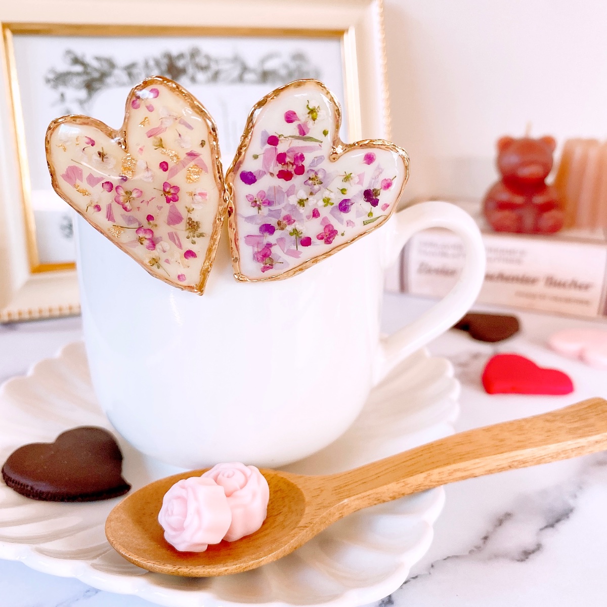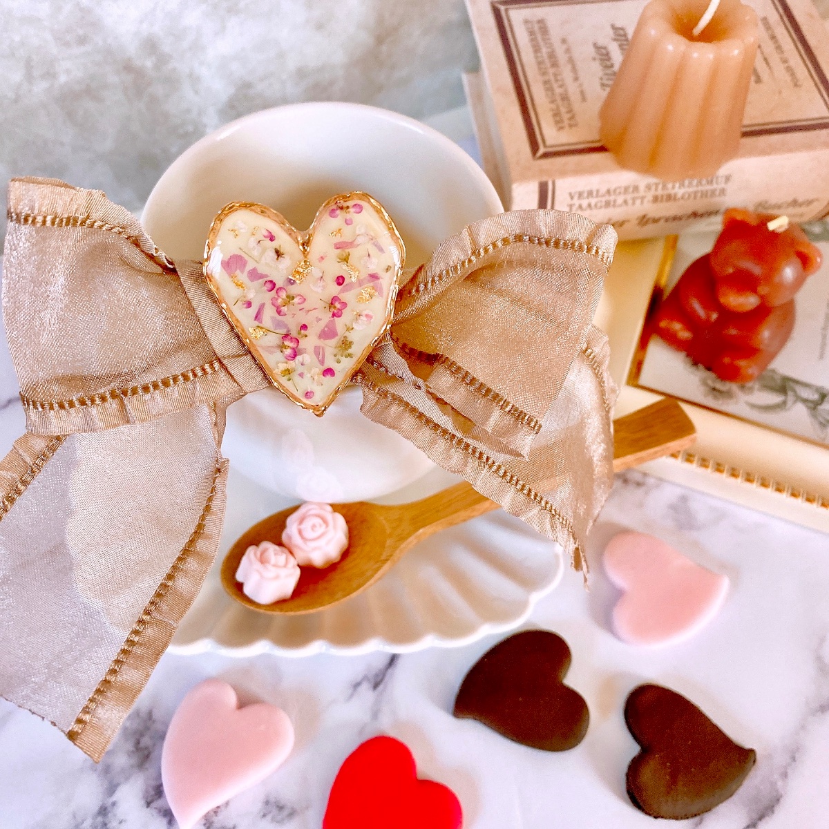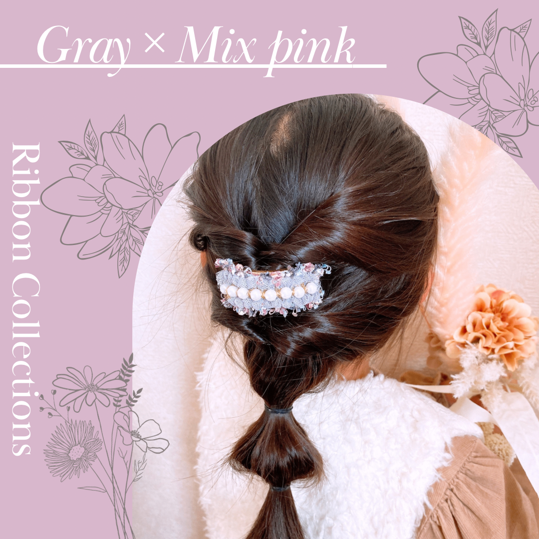 恋するハートとくすみカラー/ リボン&ポニーフック