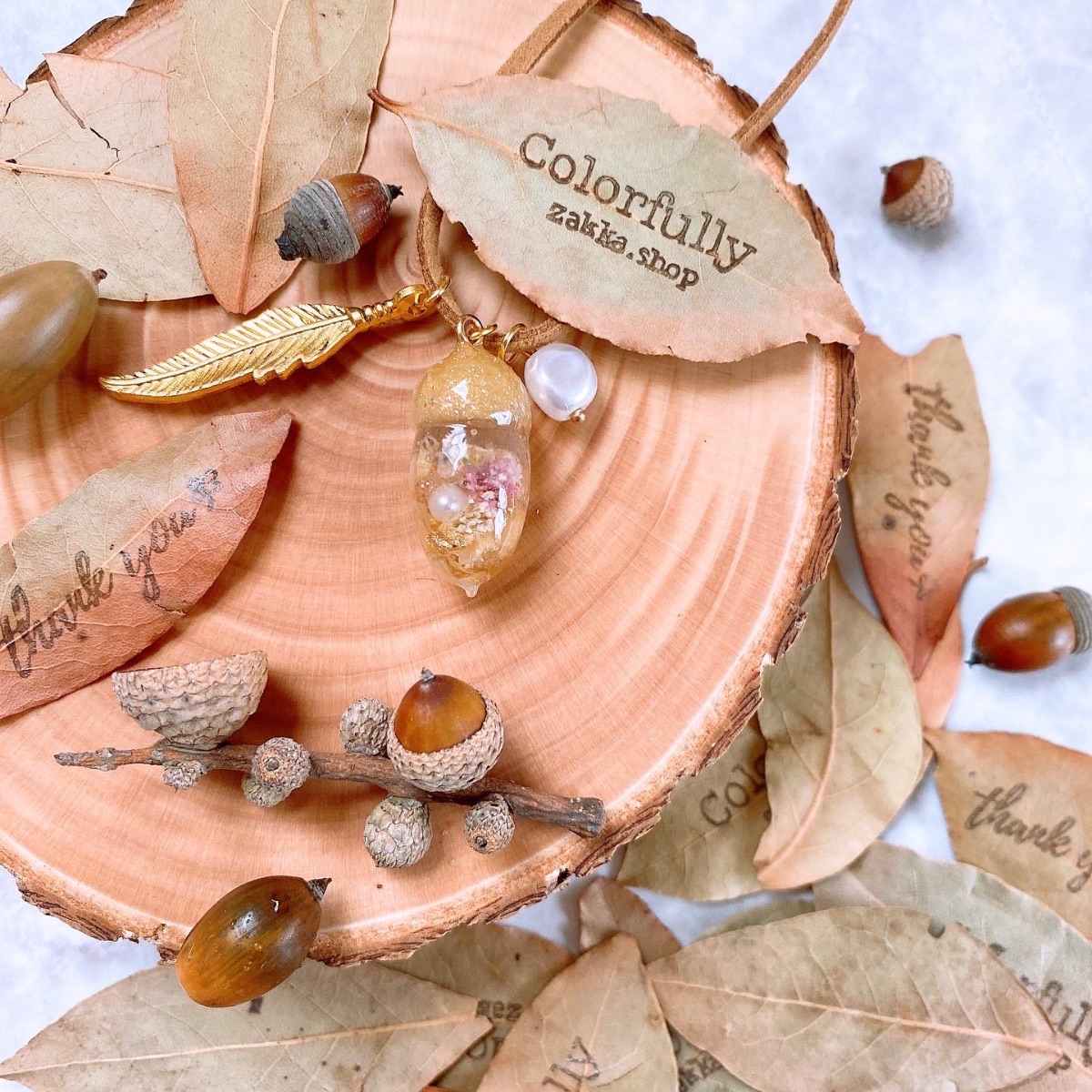 優しい気持ちをそっと込めて 〜小さな木の実のアクセサリー〜 どんぐりペンダント