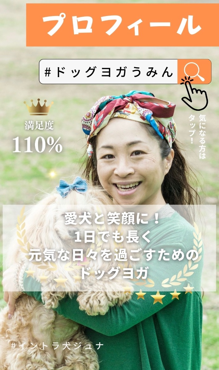 愛犬と一緒に行ううみん♡の『ドッグヨガ』 は 楽しく心地よさにだけでなく動物たちにヨガ学ぶ わんこ人、人と人を繋ぐハートフルでHAPPYなヨガです 人のヨガを東京、横浜を中心に全国各地へお届けします