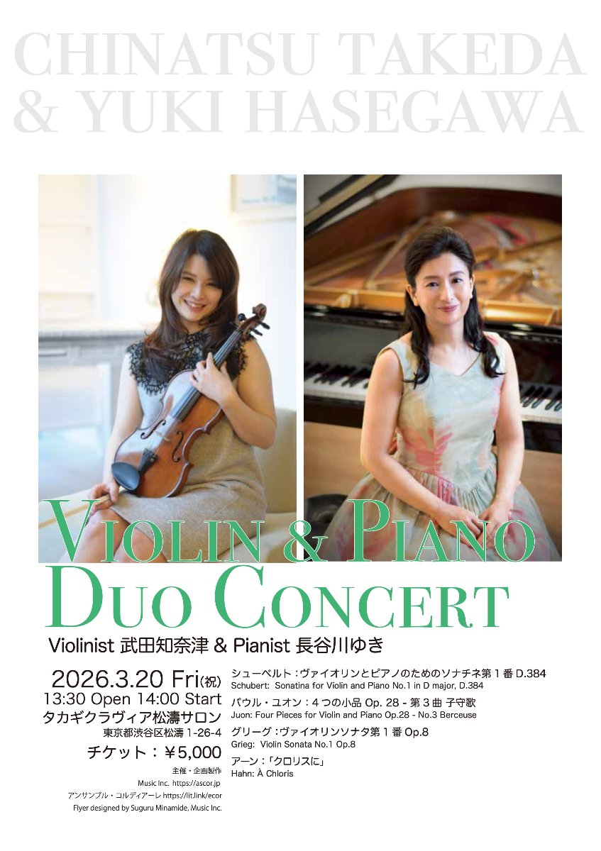 <Violinist 武田知奈津 & Pianist 長谷川ゆき Duo Concert>