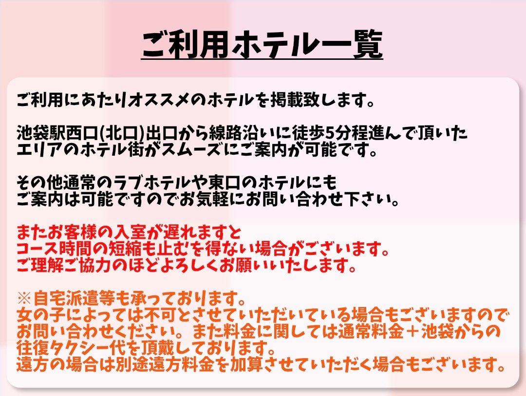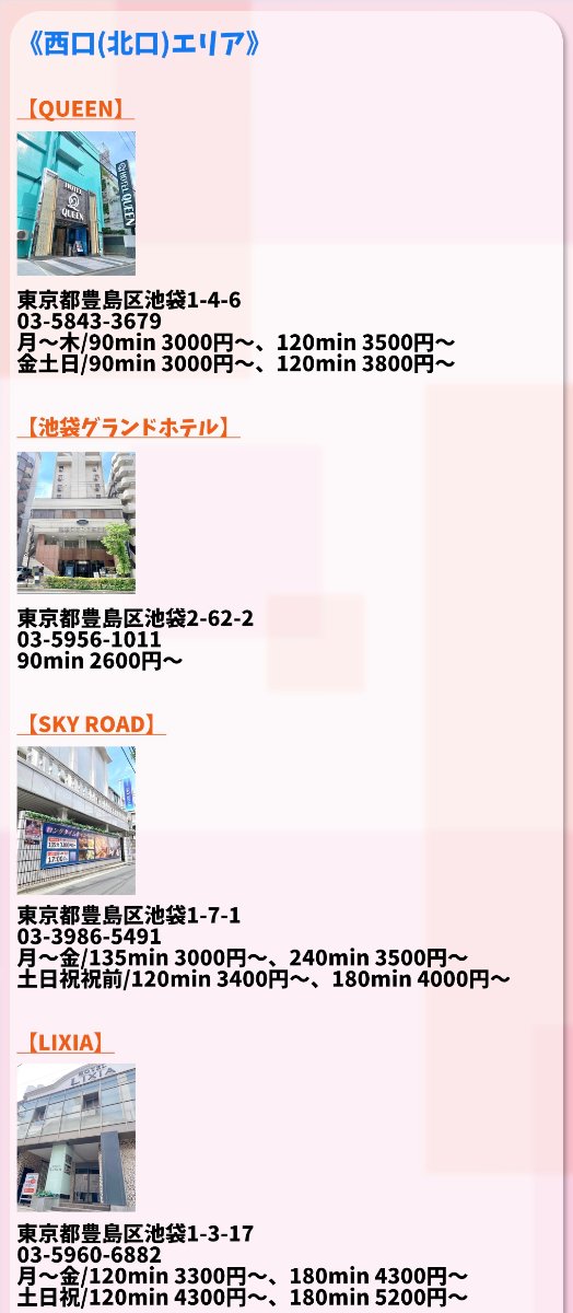 豊富な経験/実績を持つ精鋭スタッフが真心を込め手掛けた新宿スターの姉妹店、リフレの聖地<池袋>北口エリアに【池袋フェアリースター】が誕生!!!! こだわり抜いた都内随一10代純粋激かわ美少女との最高に価値ある癒し空間をご提供!!!! 在籍中の女の子ほとんどが完全未経験、日常では決して出会えない極々普通で本当にウブなド素人♡ 真摯的懇切丁寧なご案内を最大の武器にお客様のお好みをしっかりリサーチ→アテンド、損得勘定を一切排泄し常時対応させて頂きます!!!! 只今体験入店応募殺到中につき連日新美少女続々入店中!!!! SNSでは美少女の魅力を最大限に紹介した制服姿の様々な写真を投稿、現在割引イベント実施中!!!!