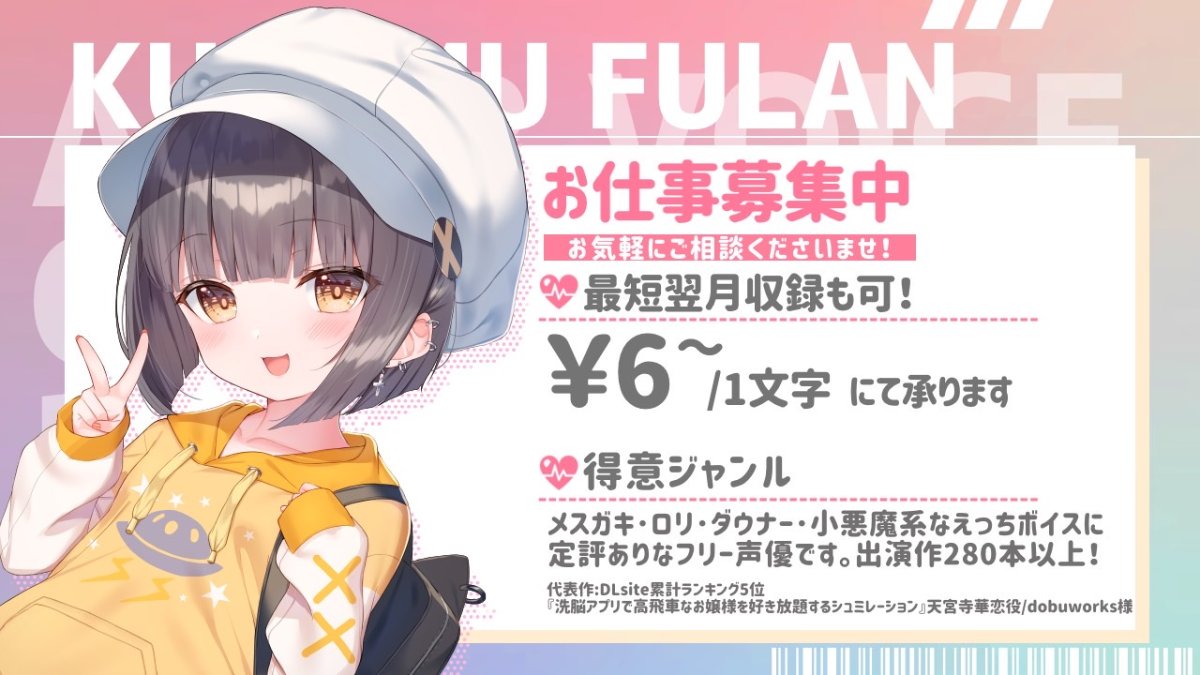 来夢ふらん完全セルフプロデュースの個人サークルです。没入感重視で、抜き・えちえち・甘々に特化しています。9/6(妹の日)に始動しました。かわいいね!