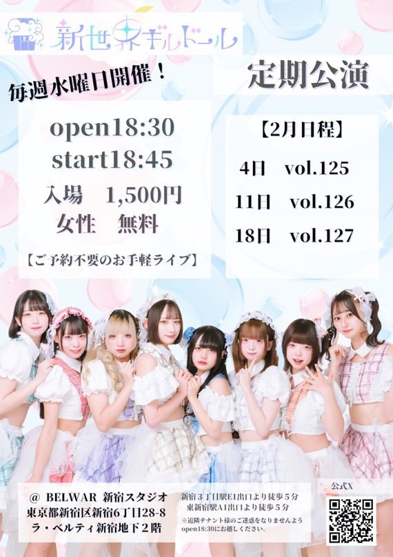 【新宿】ベルウォースタジオ 18:30/18:452月21日(土)ライブ予定