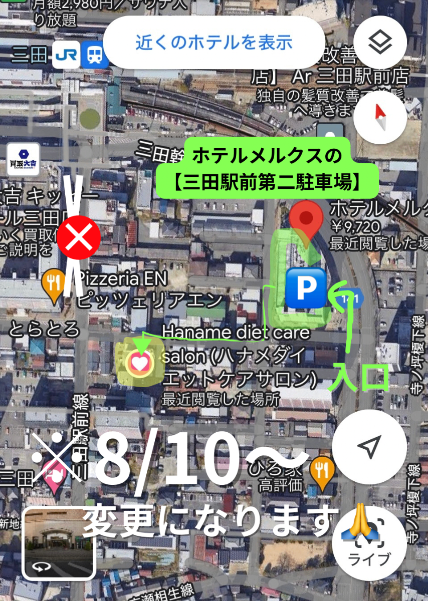 画面をタップすると三田駅前第二駐車場の経路になりますHANAME diet salon