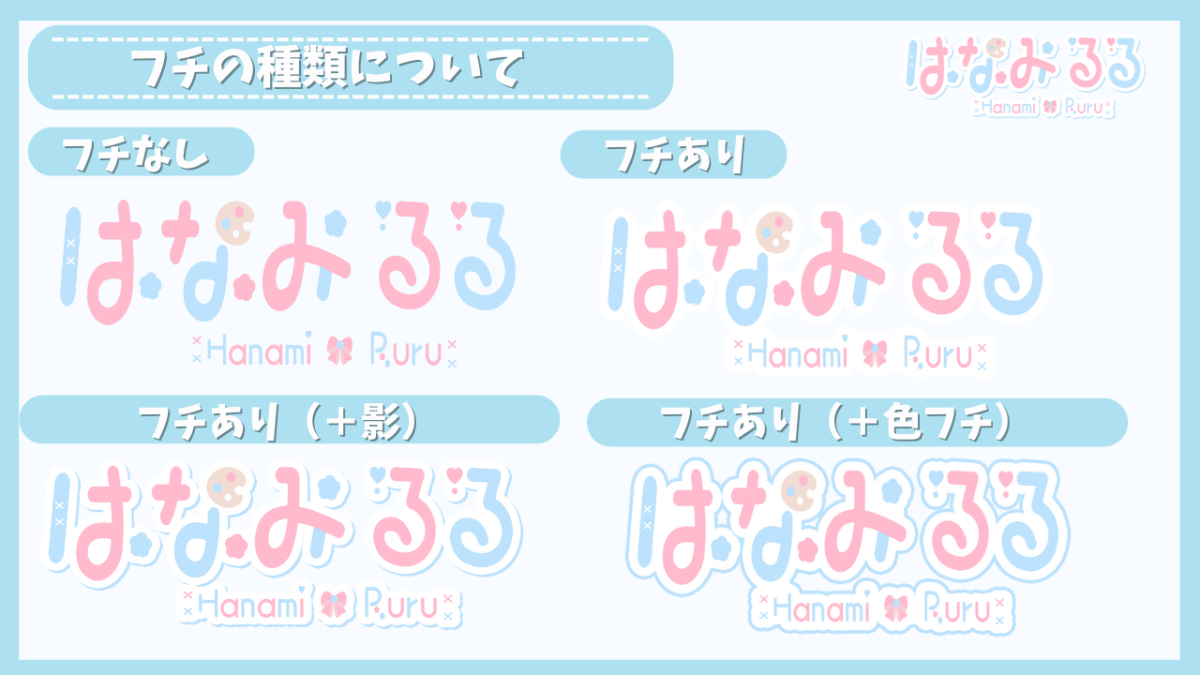 (フチ有の場合は白フチまたは白フチ+色フチ・影のどれか)