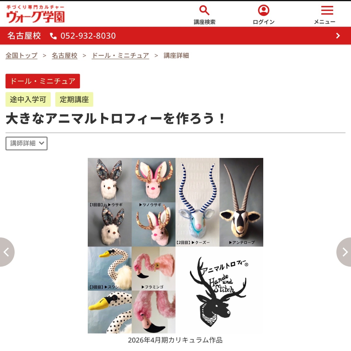 ▶︎2026年4/4(土)→定期講座・1回目『大きなウサギ、ツノウサギを作ろう!』・6/6(土)2回目「大きなクーズー、アンテロープ」・8月1日(土)3回目「大きなフラミンゴ、スワン」※ご予約受付中!