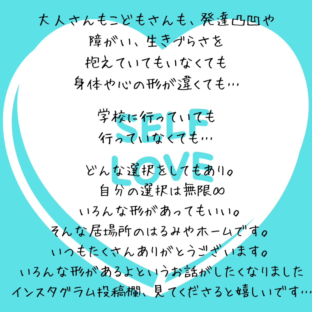å®¶åºã®æ©ã¿ã»èªåã®äºã»åã©ãã®äºããã¢ã€ãªæã¯ãããšäžäººã§æ±ããŠããŸããã¡ðŠãã®ãŸãŸèªåã®æ°æã¡ã衚çŸã§ãããçžè«ã§ãããå®å¿ãªå Žæã人ã£ãŠæå€ãšèŠã€ãããªããã§ããããã©ãã«è©±ããŠãããæš¡çŽ¢ãããã¢ã€ã¢ã€ããŠæéã°ãããçµéãããæèãåããããŠããšãã«ã¯ãäžäººã§ã¬ãã¬ãã«ãªããèªåã責ããŠããŸã£ããåãåºãŸã£ãŠããŸãð£ãã®ä»ã®éžæè¢ãã§ãŠããªãã£ããããããªæã¯ãå°ïœãèŠéãåºããŠåšãã®æ¹ã®ã話ãèããŠã¿ãããçžè«ãåãåºããŠã¿ãããããããšäŒè©±ã®äžã§ããã®è©±ã¯é ã«æ®ã£ããšããããšã§ãã®æã®äŒè©±ãæãåºããããæ°ã«ãªãã¯ãŒããåºãŠãããããªãããã®ãã³ãã«ãªãããð¡è©±ãäºãèŠæãé Œãã®ãèŠæãªãããããŸããããæã«ã¯ã誰ãã«èããŠãããã話ãäºïŒæŸãããšã倧äºãææŸãããããŸãã¡ãã³ã£ãšå¿ã«ã¹ããŒã¹ãã§ããŠãæ°ããæ å ±ãå ¥ã£ãŠããããã²ããããããèªåã®å¿ããã®äººã¯å€§äžå€«ãšçŽæã§æã£ãæã«ã¯ãä»ãŸã§äžäººã§æ±ããŠããè·ç©ãã¡ãã³ã£ãšã ãããããŠã¿ãŠçžè«ããŠã¿ãŠãðãå®¶åºã®åé¡ãèªåã®äºããåãããåŠæ ¡ã«è¡ããªãã幌çšåãåŠæ ¡ã«è¡ãæžãããã£ãããçºéãæ°ã«ãªããšããããããšãªãããðä»ãšãªã£ãŠã¯ãããããã®åŠã³ãæ§ã ãªéžæè¢ããå®¶åºã«åã£ã圢ãéžãã§ãããããšæããããã§ãã¡ãã£ãšããæ©ã¿ã¯ã§ãŠãããã®ãããããªã話ãã§ããããäžä»£ãæ ãå¶éãåŠå®ããžã£ããžã®ãªãå Žæãã¯ãã¿ãããŒã ãšããå Žãããµãã£ãšç¹ããåã£ãŠããããå¬ããã§ããèªåãèŠã€ããŠãèªããŠãçããæããŠèš±å¯ãåºãã£ãŠèªåã®äºãšãªããšãé£ããæããããŸãããð€ã ãã©å€§äžå€«ðïŒç¡çã«ããžãã£ãã«ãªããªããŠããããæ³£ããããšããèœã¡èŸŒãã§ããšããç¬ããããšããæ¥œããæãããã®ææ ãæãååæããŠããããã©ããªå¿ã®åœ¢ã§ãã£ãŠããOKïŒðãããããã©ããªåŠã³ãéžæããŠã倧人ãããåã©ããããã¿ããªãçããããç°å¢ã«ããŠããããããããªæãã§ã¯ããããšå ±ã«ã¯ãããŠããŸããã¿ãªãããã¯ãããã¿ãã¡ãããšãåéã«ãªã£ãŠãã ãããäžäžé¢ä¿ãè¡çžãäžä»£é¢ä¿ãªãæ ããè¶ããŠãçãããšå ±ã«ç¹ãã£ãŠããããå¬ããã§ããããããèªãã§ãã ããããããšãããããŸãããã ããã ãã§ãæè¬ã®æ°æã¡ãã£ã±ãã§ãðãçžè«ã»ã質åã¯ãªããªããšharumiyahome@gmail.comã¯ãã¿ãããŒã ãå¹³ç°ããã€å