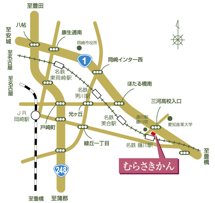国道1号線沿い、名鉄「藤川駅」下車スグ、道の駅「藤川宿」となり