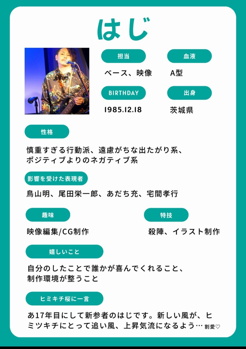 2025年(ヒミツキチ17年目)には新メンバーベーシスト〝はじ〟加入!