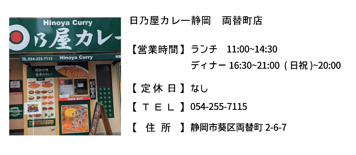 日本最大級のカレーの祭典「神田カレーグランプリ」でグランプリ受賞&殿堂入り! 王道のカツカレー、メンチカツカレーに加え、静岡の皆さんに気に入っていただける限定メニューを用意しています。