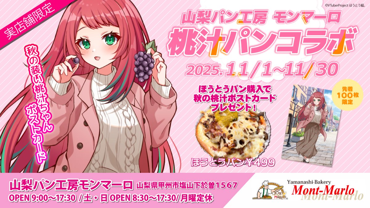 - ももじゅーる🍑2022年9月から活動を始めた【山梨ご当地VTuber】の宝灯桃汁(ほうとう・ももじる)ナリ!山梨首都化を目指し、山梨を盛り上げるためにがんばっているナリよ!YouTubeで生配信や動画投稿をしたり、グッズを作って県内のお店で売ったりして勢力拡大中!!少しでも気になったらぜひ配信に遊びに来てくれナリね!
