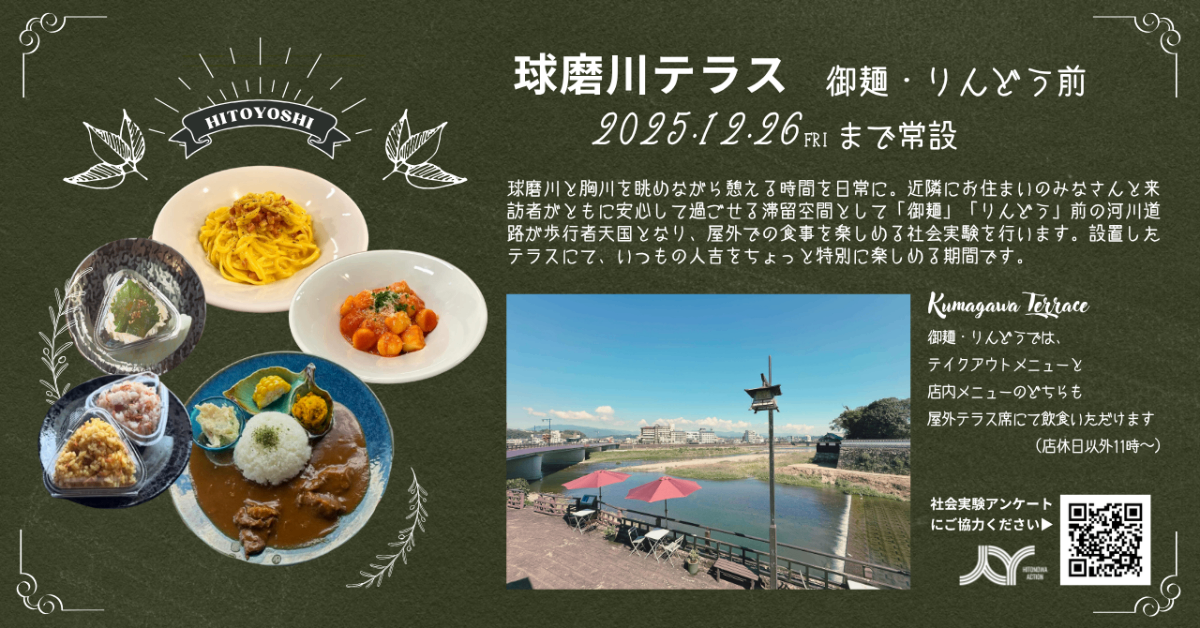 *上記企画は、人吉市まちづくりデザイン会議が市民・事業者のみなさんとともにつくる社会実験「HITONOWA ACTION」の一環として実施しています。