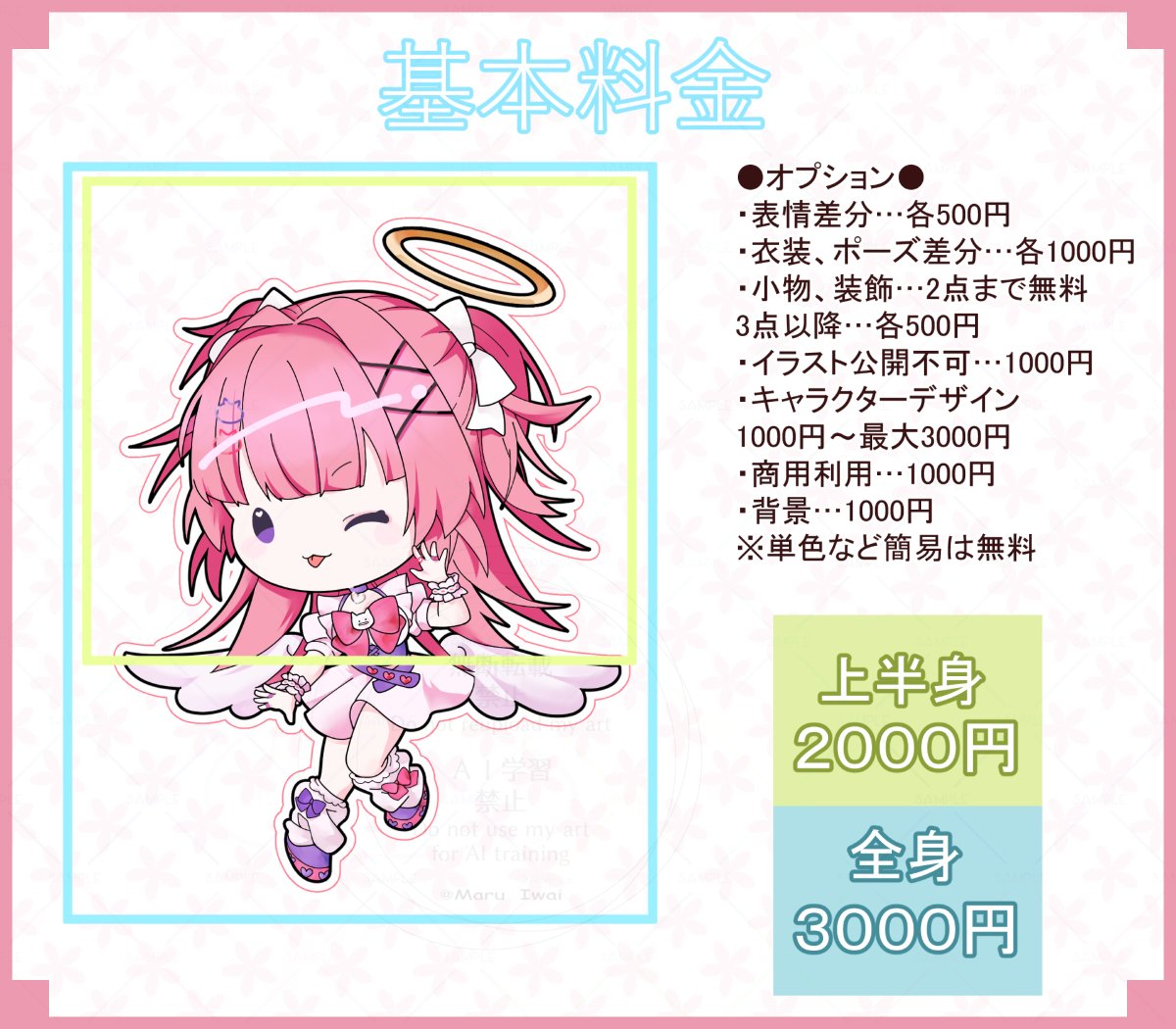 Xと平行しつつ、絵の進捗を載せています。料金表