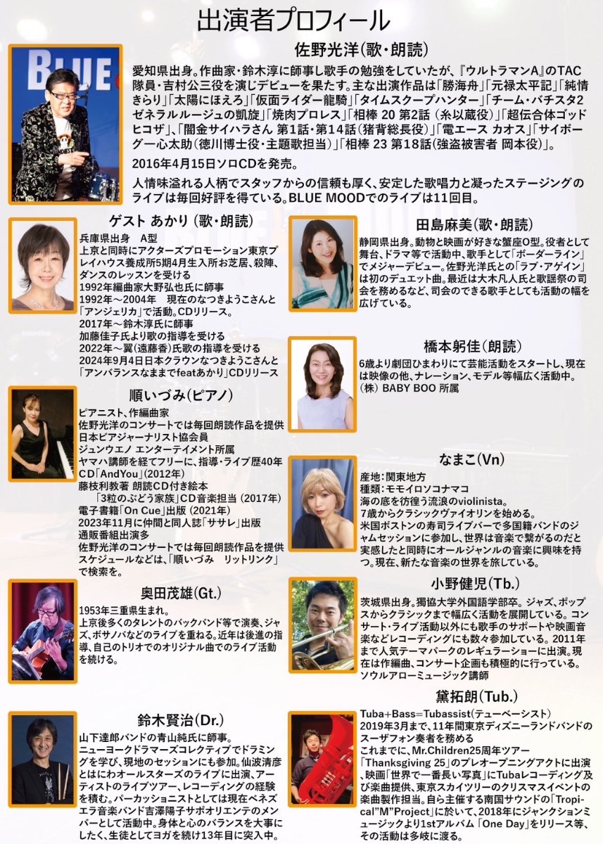 橋本美佳(朗読)とのユニット。朗読+生演奏。今年11年目。ライブ多数。ライン公式