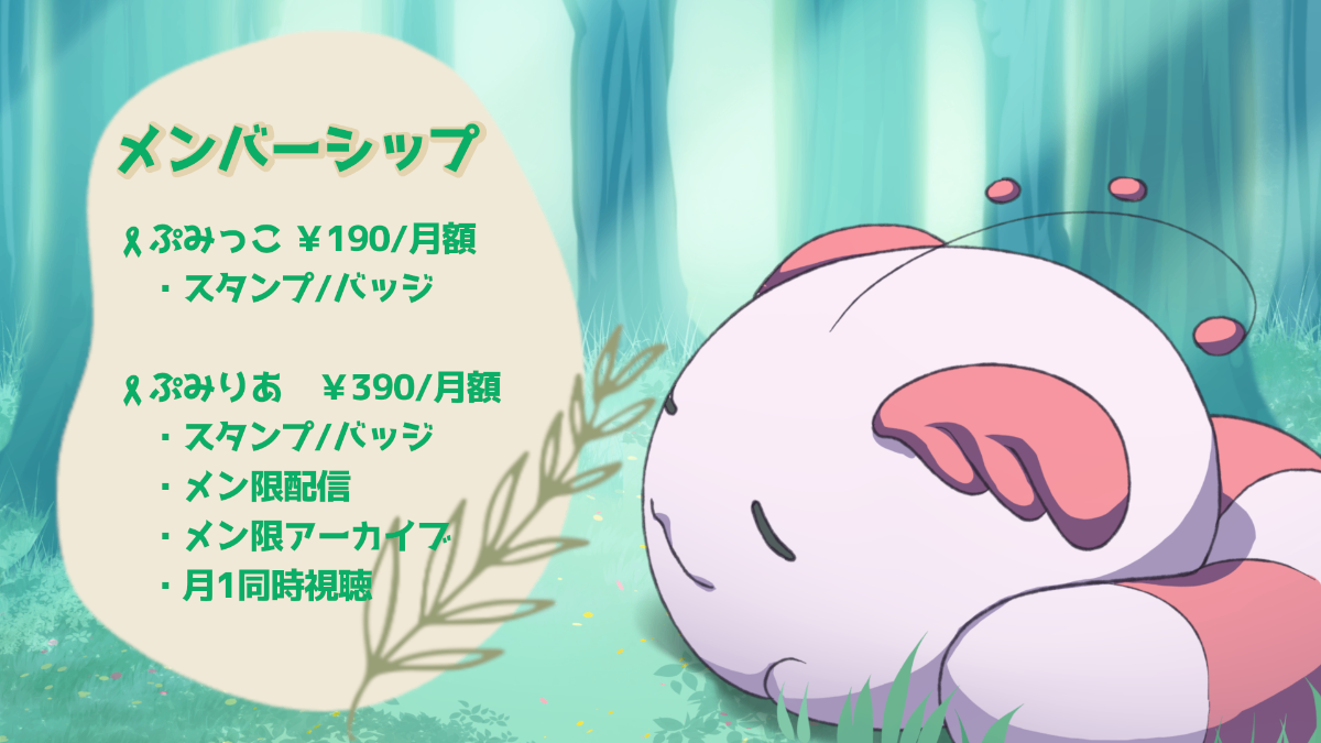 🎗メンバーシップ / ①使い魔「ぷみっこ」: 月額190円 ②使い魔「ぷみりあ」: 月額390円