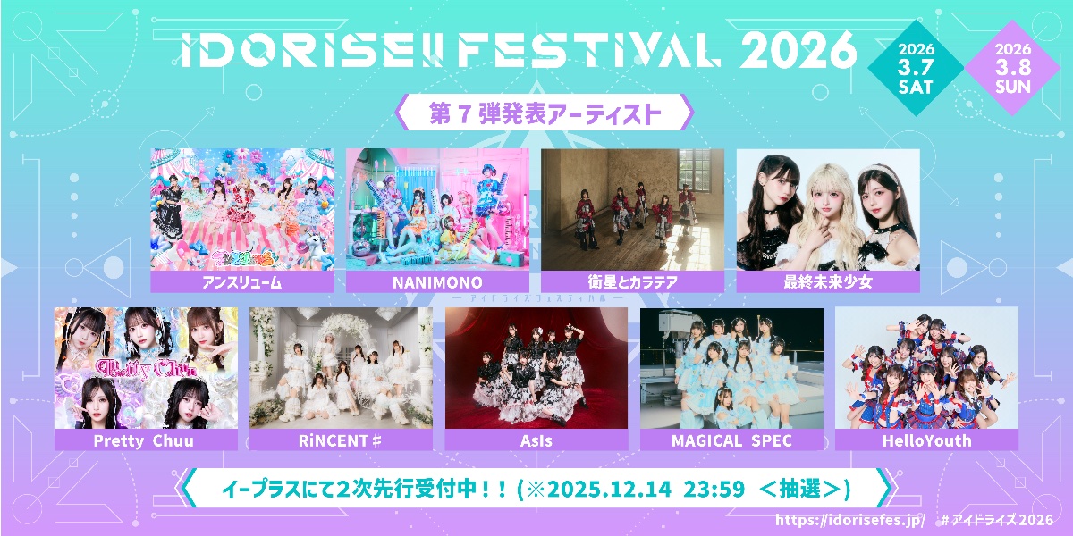 【サーキット】3/7(土)、8(日)「IDORISE!! FESTIVAL 2026」@Spotify O-EAST 等 全9会場 ※両日出演
