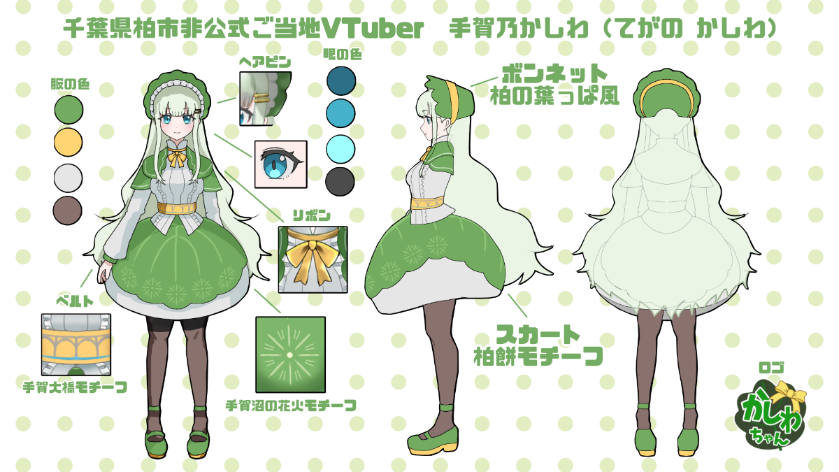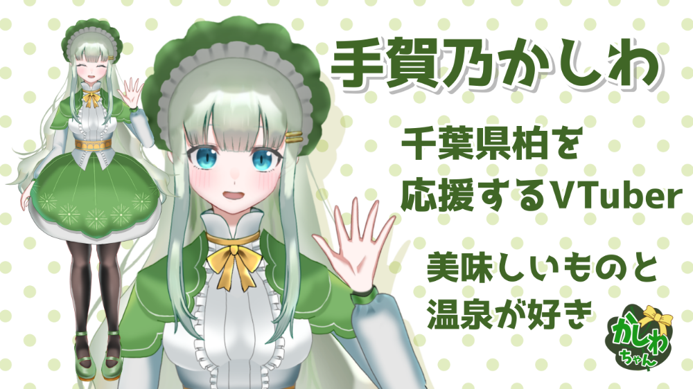 千葉県柏市の非公式ご当地VTuber手賀乃かしわ(てがの かしわ)愛称はかしわちゃん柏出身のバーチャルタレント。好きな物は美味しいものと温泉。特技はお絵描き。(補足)個人勢 2D・3Dともに自作 ※Live2D作成キットを使用Twitterのタグ・ファンマ