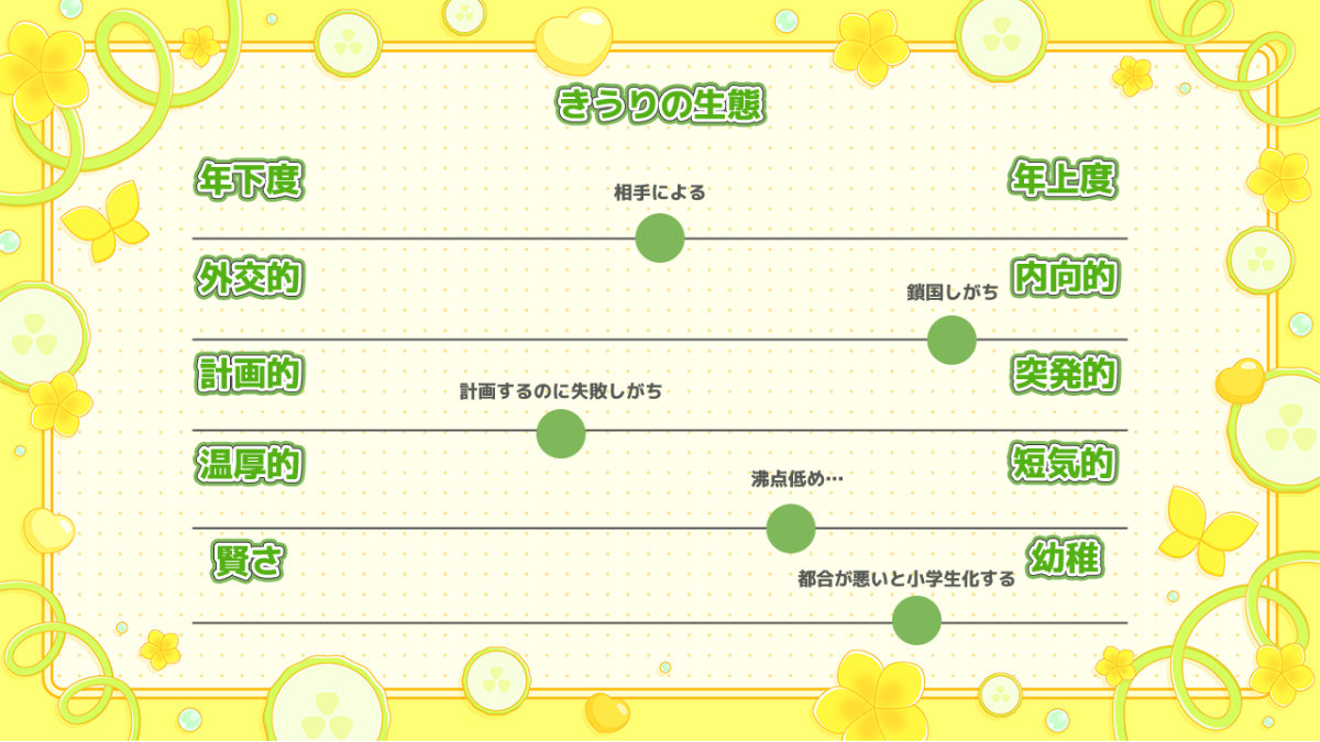 〇あくまでも人間なため「きゅうちゃん」・「きゅうかんばー」きゅうりそのもの系のあだ名は他の人にも定着してしまう恐れがあるため控えてください。