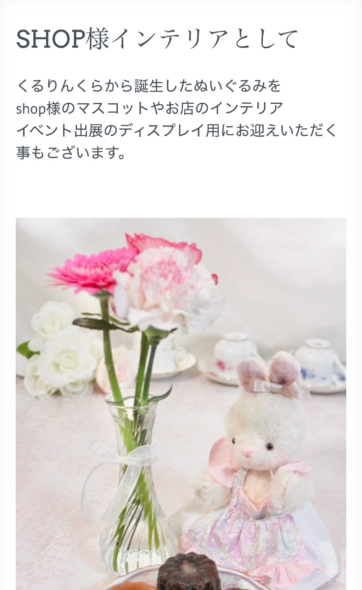•イベント出展へのお誘い等は、現在【静岡県西部】【愛知県名古屋市】のみお受け出来ます。•モデルルームインテリア、ショップ店内インテリア、雑誌小物・ドラマ撮影小物等で当店のぬいぐるみをご検討いただける場合はkururincla@gmail.comまでご相談ください。常設 委託販売