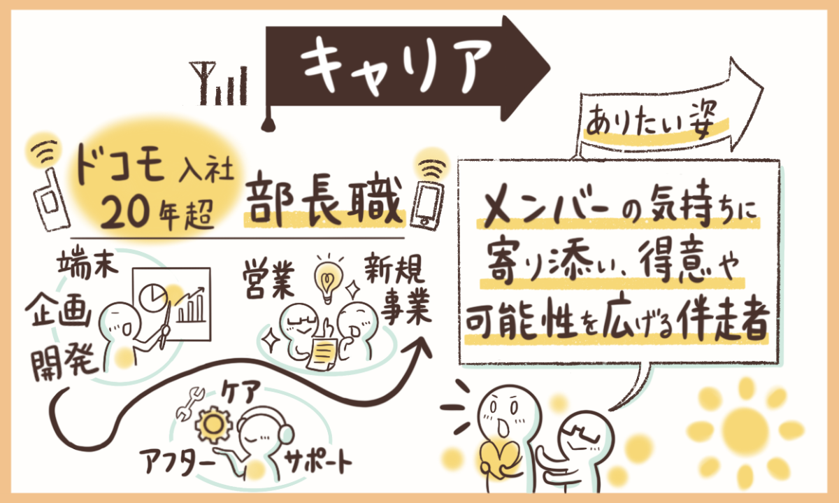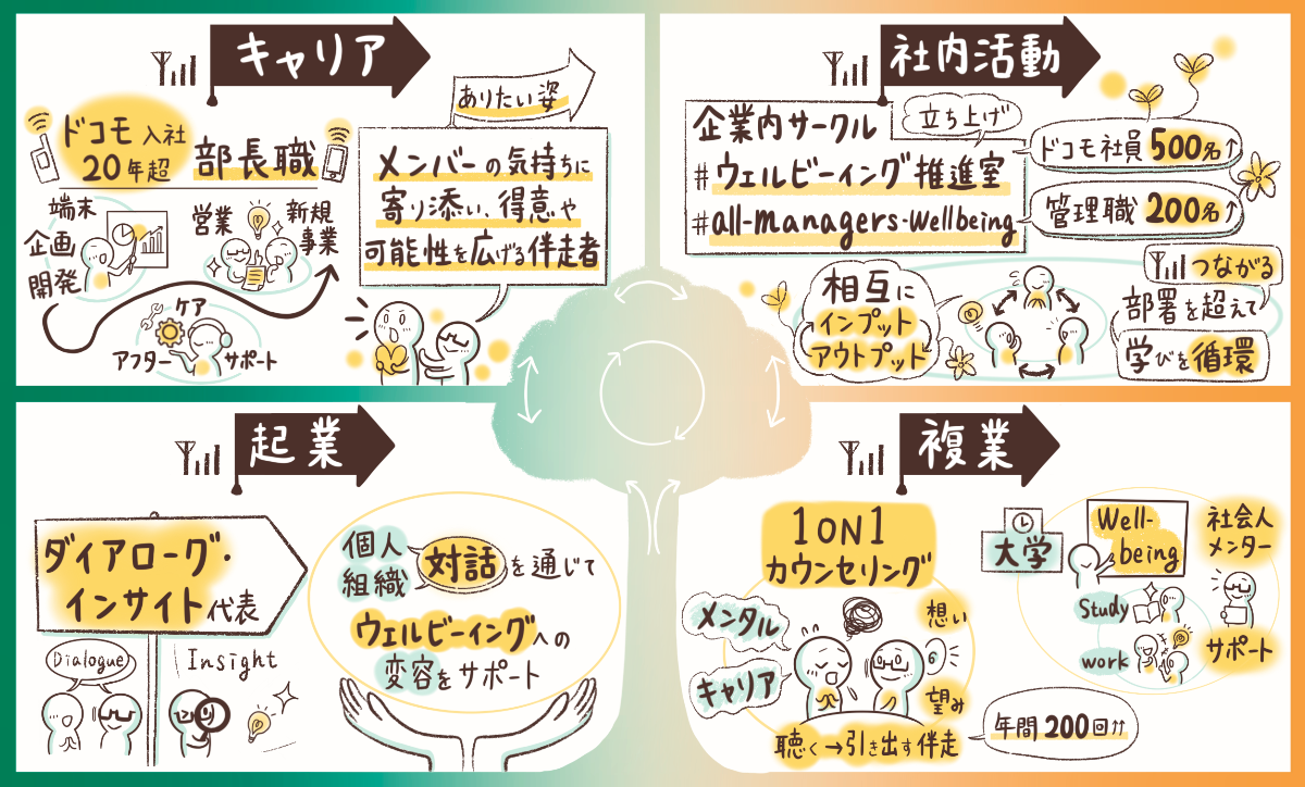 ドコモ公認サークル[ウェルビーイング推進室]発起人 「聴くを極めて、あなたの一歩に寄り添う」 - 心の芽吹きを照らし、個の幸せから 組織/社会の幸せへと輪を広げるナビゲーター -