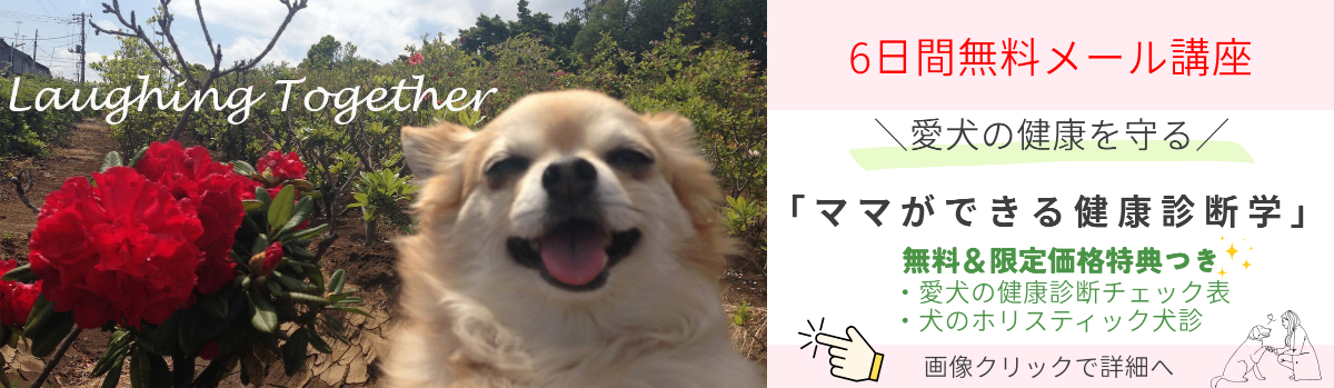”Laughing Together ~ラフィング トゥギャザー~"には一人ではでなく、”一緒に笑う”という意味があります。愛犬が闘病したとき、私が悲しい顔をしていると、愛犬がとても心配そうな顔で動くのもやっとの体で寄り添ってくれました。そのとき、あぁ、愛犬が安心して過ごせるためには"私の心と体も安心や笑顔でいれることもすごく大切なんだ!"と実感しました。そこから、飼い主さまと、愛犬ちゃんの心と体を楽にするホリスティックケアに辿り着きました。"元気で長生き"のコツは・・・・未病のサインを知り・心と体のバランスが崩れている根っこをみつけ・その子にあう方法で心・体・食事・運動を整えることで自然治癒力を整えていくこと。そして・・・・お薬だけでは改善が難しい子・皮膚炎を繰り返してしまう子・療法食を食べてくれない子や食欲不振の子ほかにも原因不明の不調を繰り返す子・・・そんな子達の心と体を楽にしていくのに、体の流れを診ていく中医診断学はとても役に立つことが多くあった経験から・不調の原因と改善の道筋を中医診断学でみつけ・飼い主さまのライフスタイルに沿った・愛犬ちゃん専用のおうちケアを、ペット栄養管理士&犬の中医診断学カウンセラーが直接相談にのりながら組み立てサポートしていくカウンセリング飼い主さまご自身が、毎日のごはんで愛犬ちゃんの体調ケアのプロを目指せる講座愛犬ちゃんに直接お話をうかがい飼い主さまに愛犬ちゃんの心と体の声をお届けするアニマルコミュニケーションを通して、・飼い主さまが安心して愛犬ちゃんのことをご相談でき・不調の起因がわかることで安心が増え・忙しい毎日の中でも楽しくケアが続けることができ・愛犬ちゃんの心と体も楽にしていく”場”を作れたらいいなと思い、Laughing Togetherの活動をスタートしました。どんなときにもできることがある・・・それを一緒に見つけていきましょう!"大切な人達、愛犬達と、一緒に笑いあえる日々を♪”